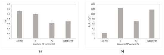 | AISI430 + 3.6 wt.% GP | 151 | 1235 | 1084 | 3.057 × 10−7 |