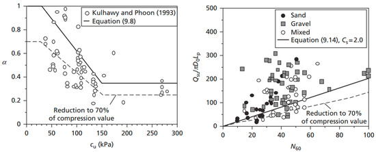 - Kulhawy, F.H.; Phoon, K.K. Drilled Shaft Side Resistance in Clay Soil to Rock. In Design and Performance of Deep Foundations: Piles and Piers in Soil and Soft Rock; ASCE: Reston, VA, USA, 1993; pp. 172–183. [Google Scholar]