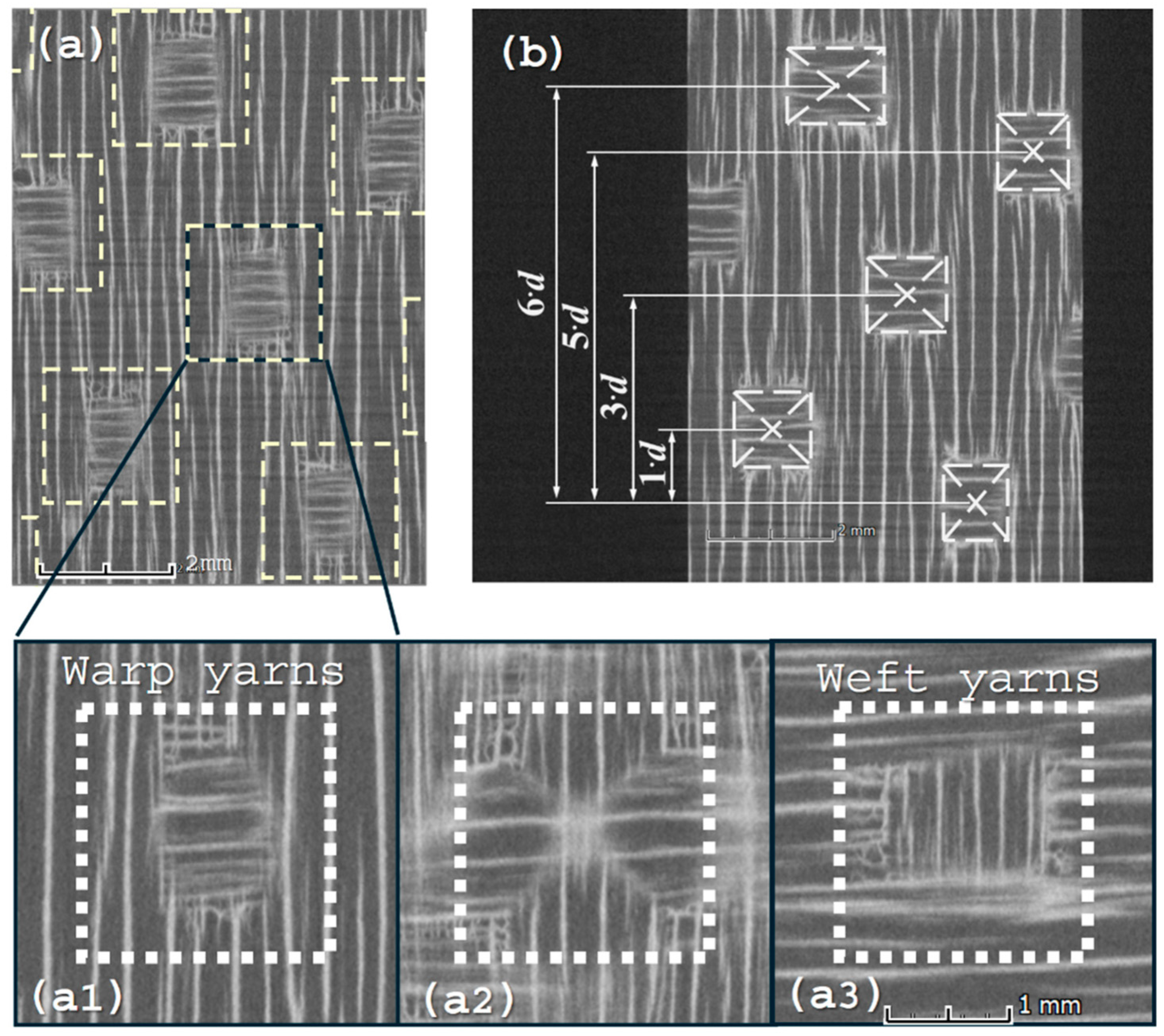 - Huang, W.; Causse, P.; Brailovski, V.; Hu, H.; Trochu, F. Reconstruction of mesostructural material twin models of engineering textiles based on Micro-CT Aided Geometric Modeling. Compos. Part A Appl. Sci. Manuf. 2019, 124, 105481. [Google Scholar] [CrossRef]