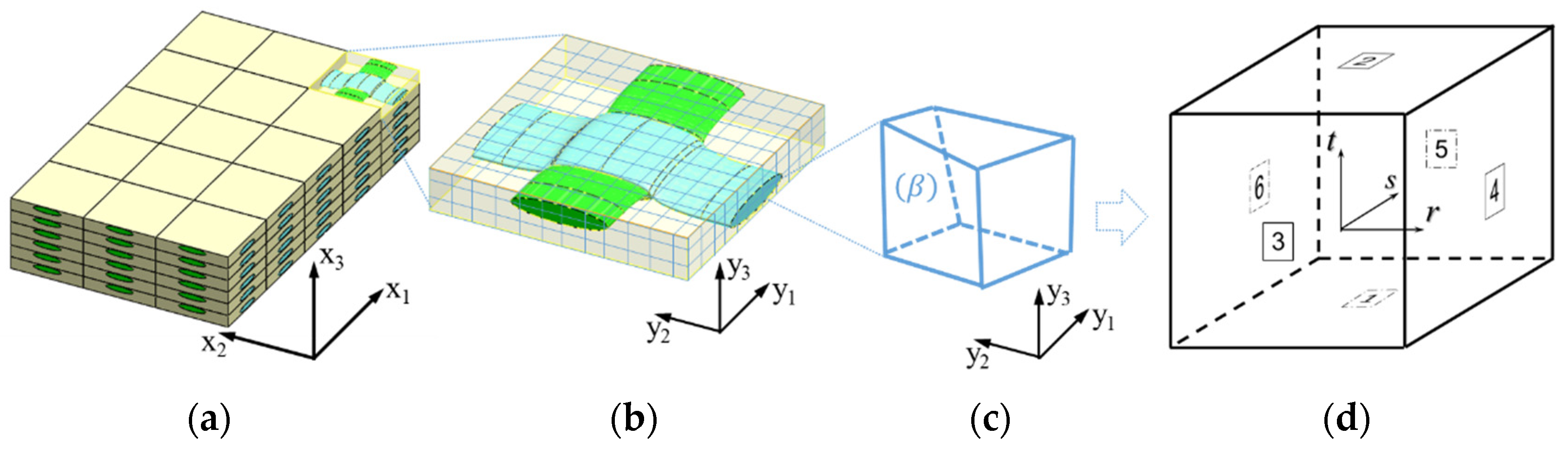 - Haj-Ali, R.; Aboudi, J. Formulation of the high-fidelity generalized method of cells with arbitrary cell geometry for refined micromechanics and damage in composites. Int. J. Solids Struct. 2010, 47, 3447–3461. [Google Scholar] [CrossRef]