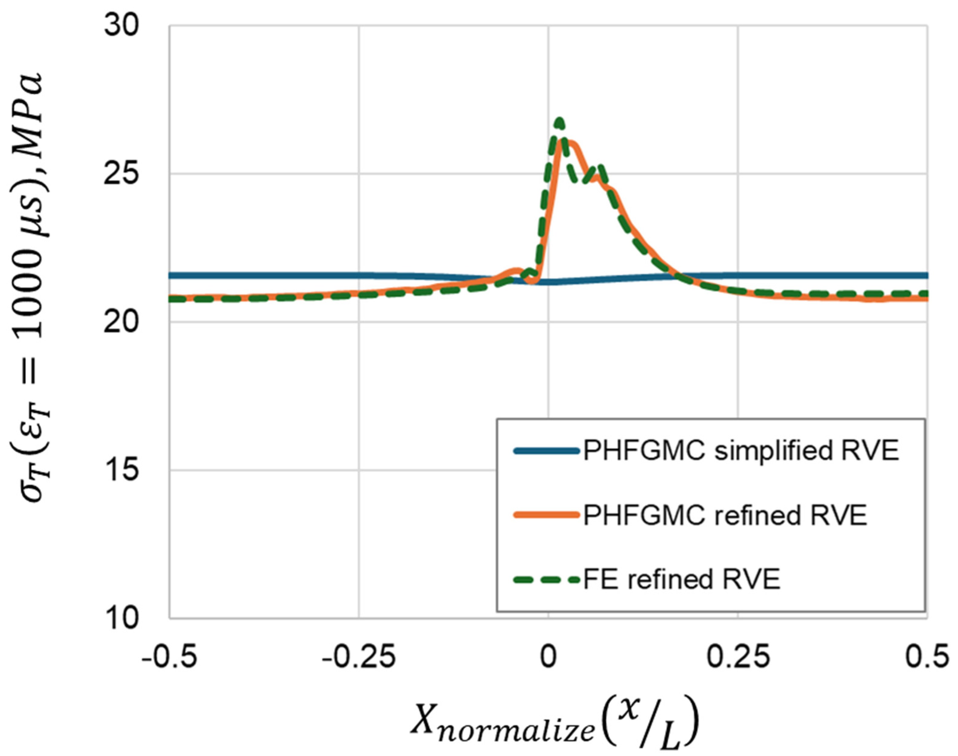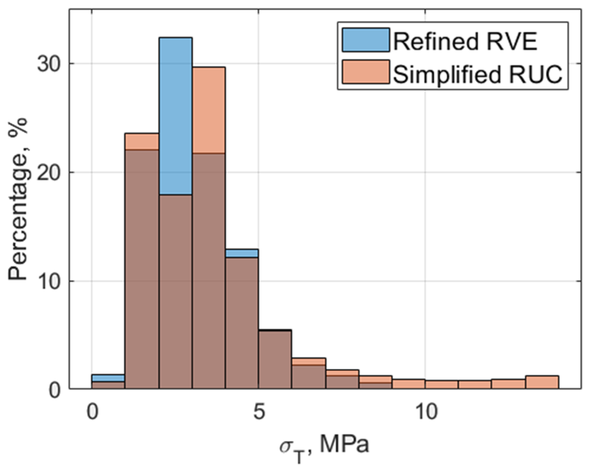 - Refined microstructural RVEs were shown to be essential for local stress-field resolution, as simplified C/C and intra-yarn geometries led to noticeable deviations in transverse stress distributions, highlighting the limitations of idealized representations when local damage-driving fields are of interest.