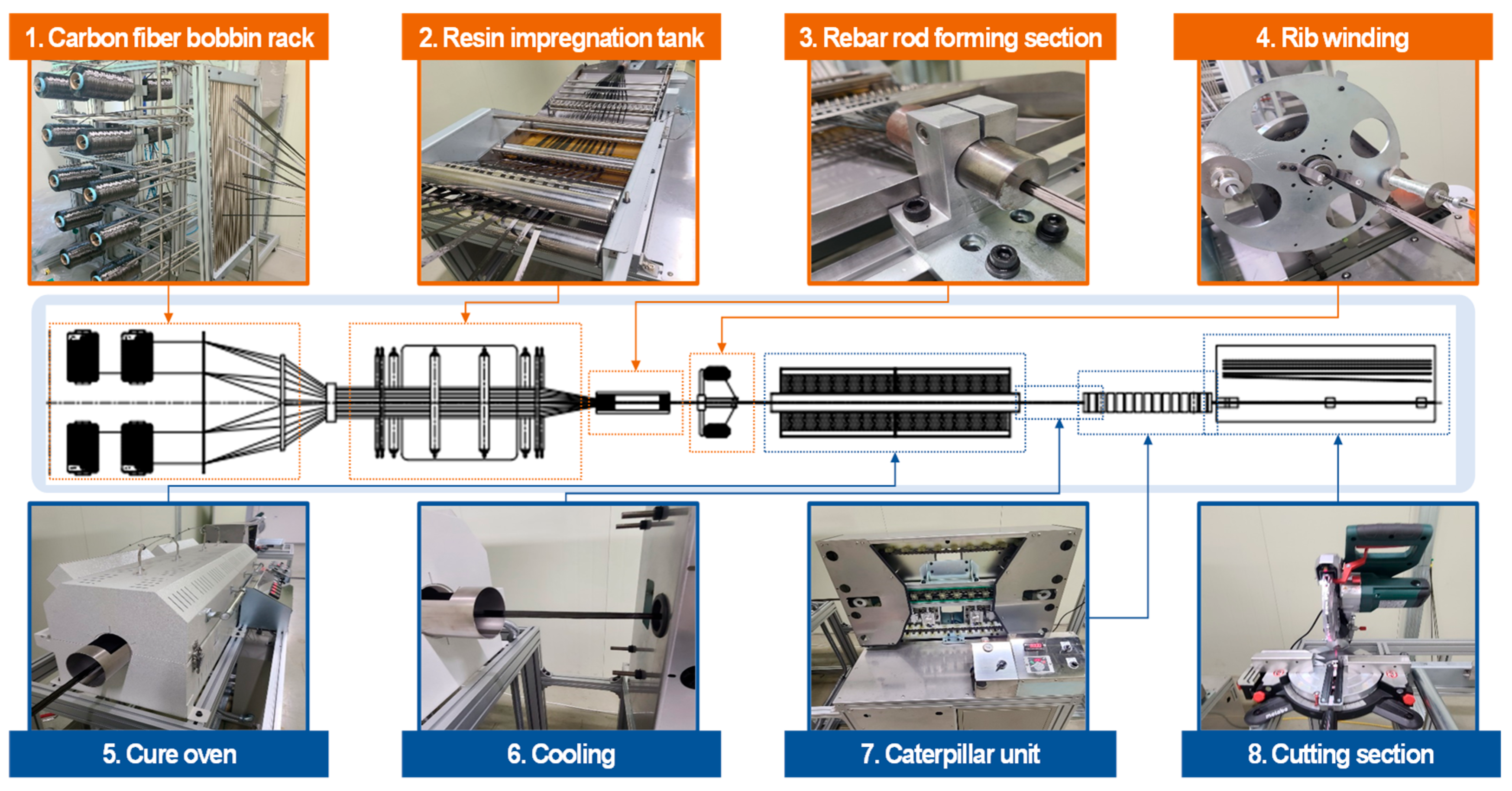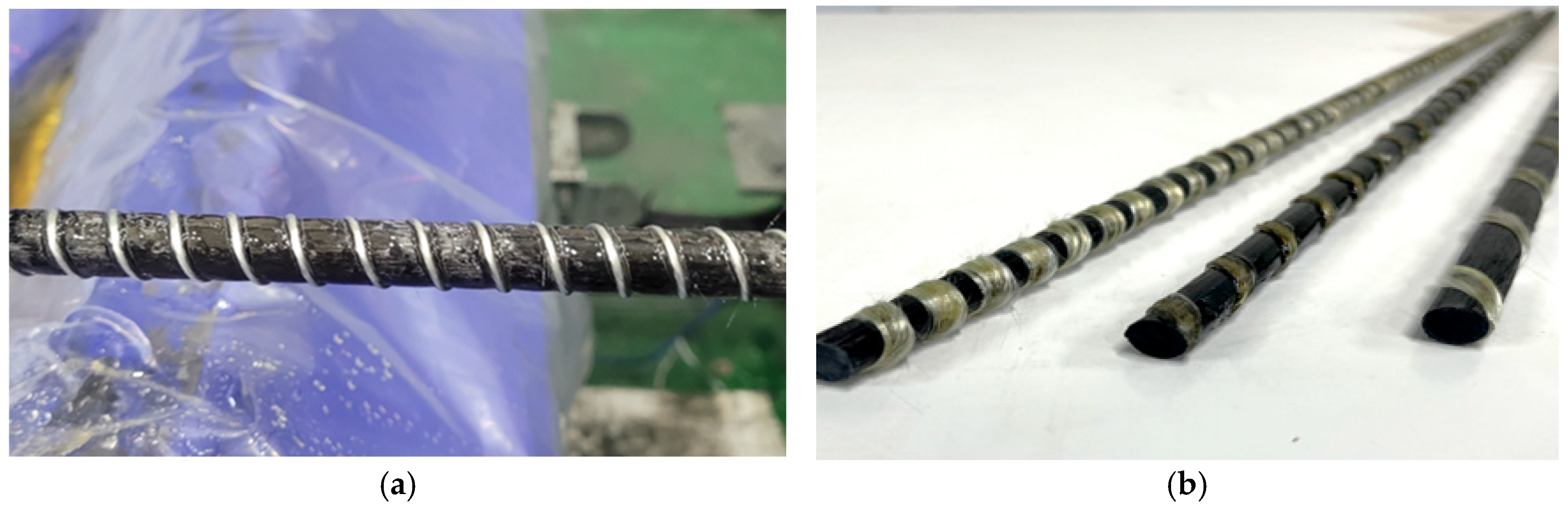 - Kim, N.-i.; Kwon, D.-y.; Burenkhangai, D.; Lee, K.-m.; Bae, S.-y.; Chu, Y.-s. A study on manufacturing CFRP rebar with a high tensile strength. J. Korean Ceram. Soc. 2023, 60, 488–495. [Google Scholar] [CrossRef]