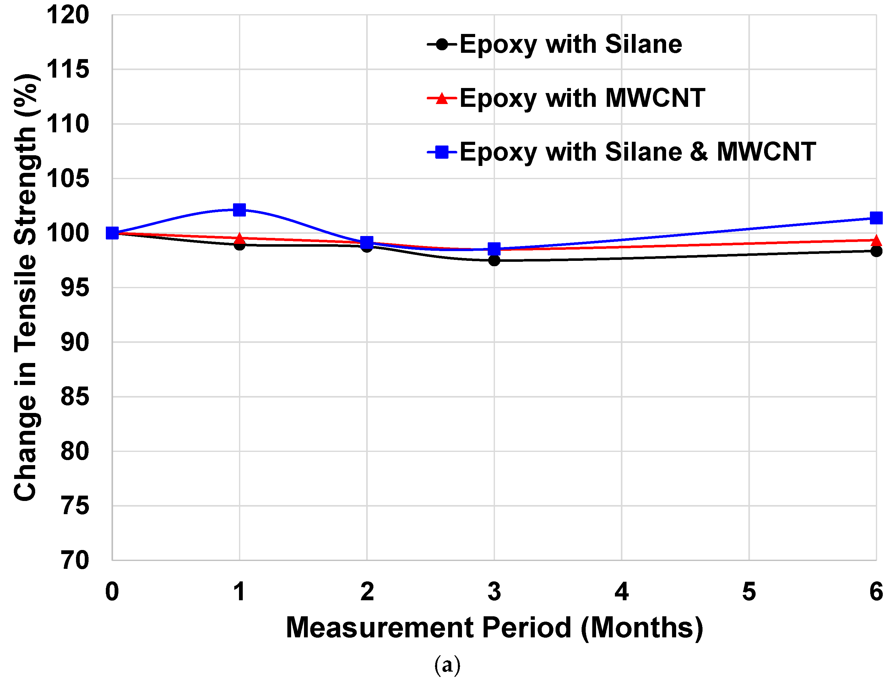 - Lee, J.-H.; Rhee, K.Y.; Park, S.J. Silane modification of carbon nanotubes and its effects on the material properties of carbon/CNT/epoxy three-phase composites. Compos. Part A Appl. Sci. Manuf. 2011, 42, 478–483. [Google Scholar] [CrossRef]