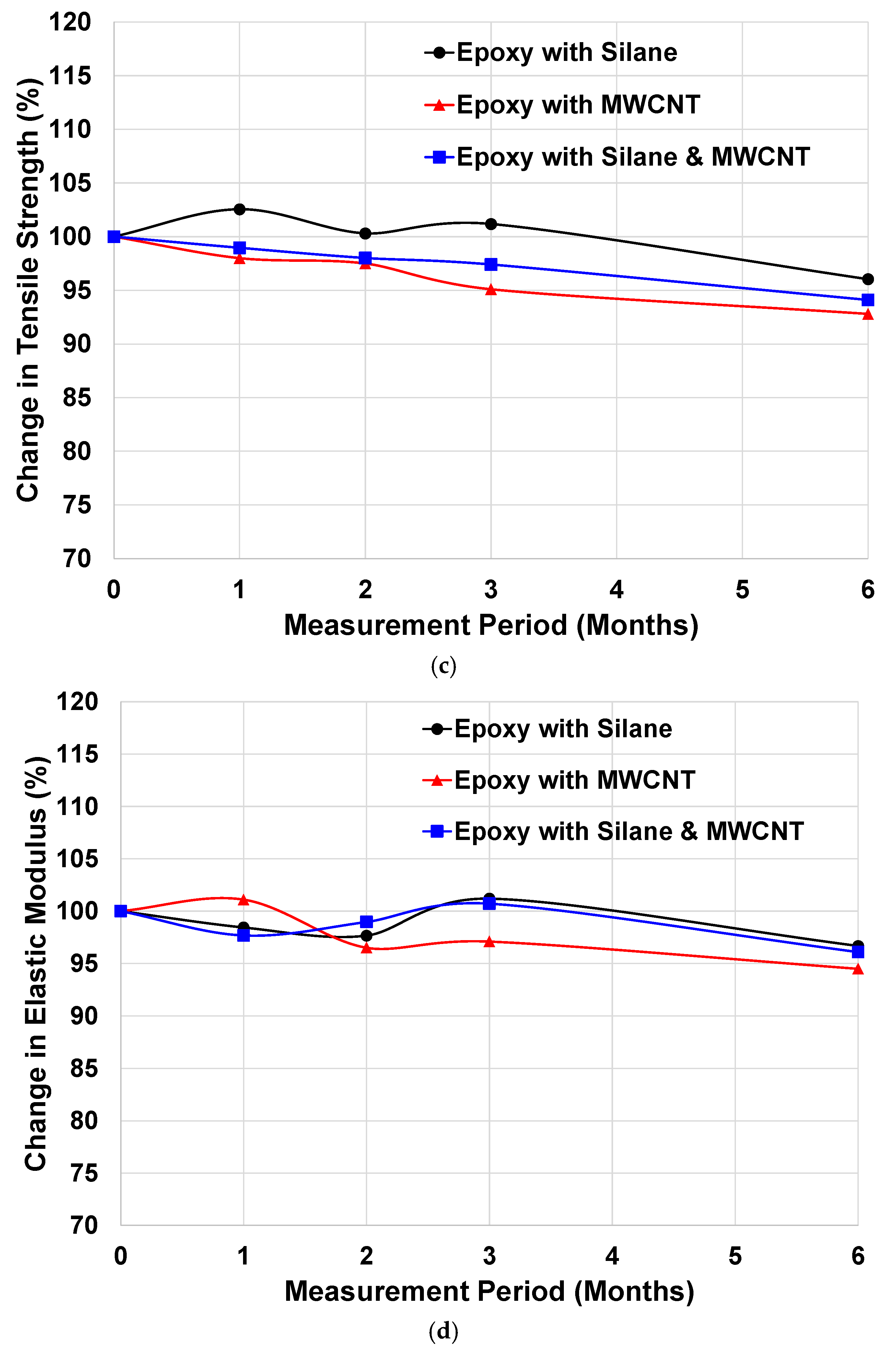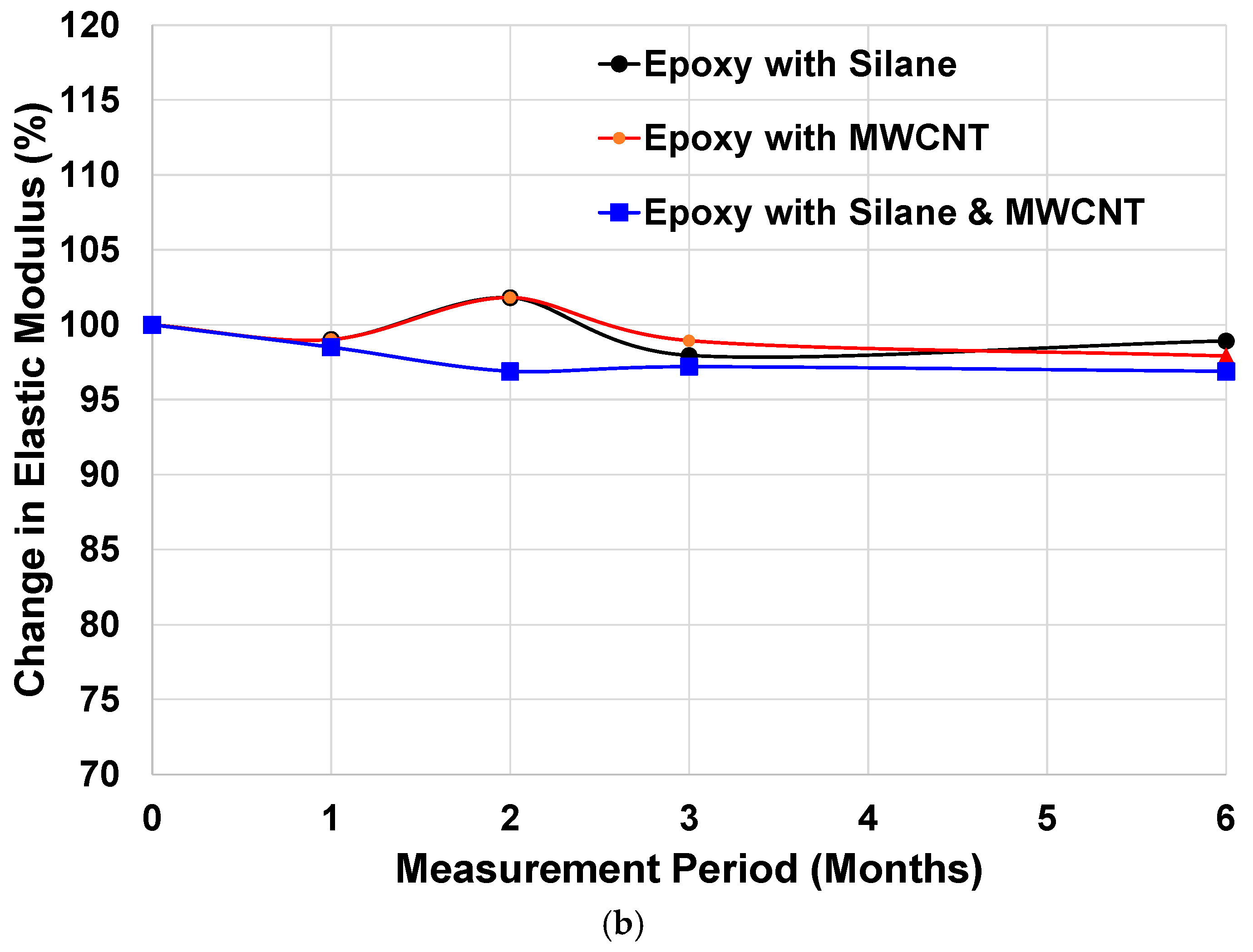 | Epoxy with Silane & MWCNT | 2395 (72) | 155 (8) | 15.5 (0.5) |