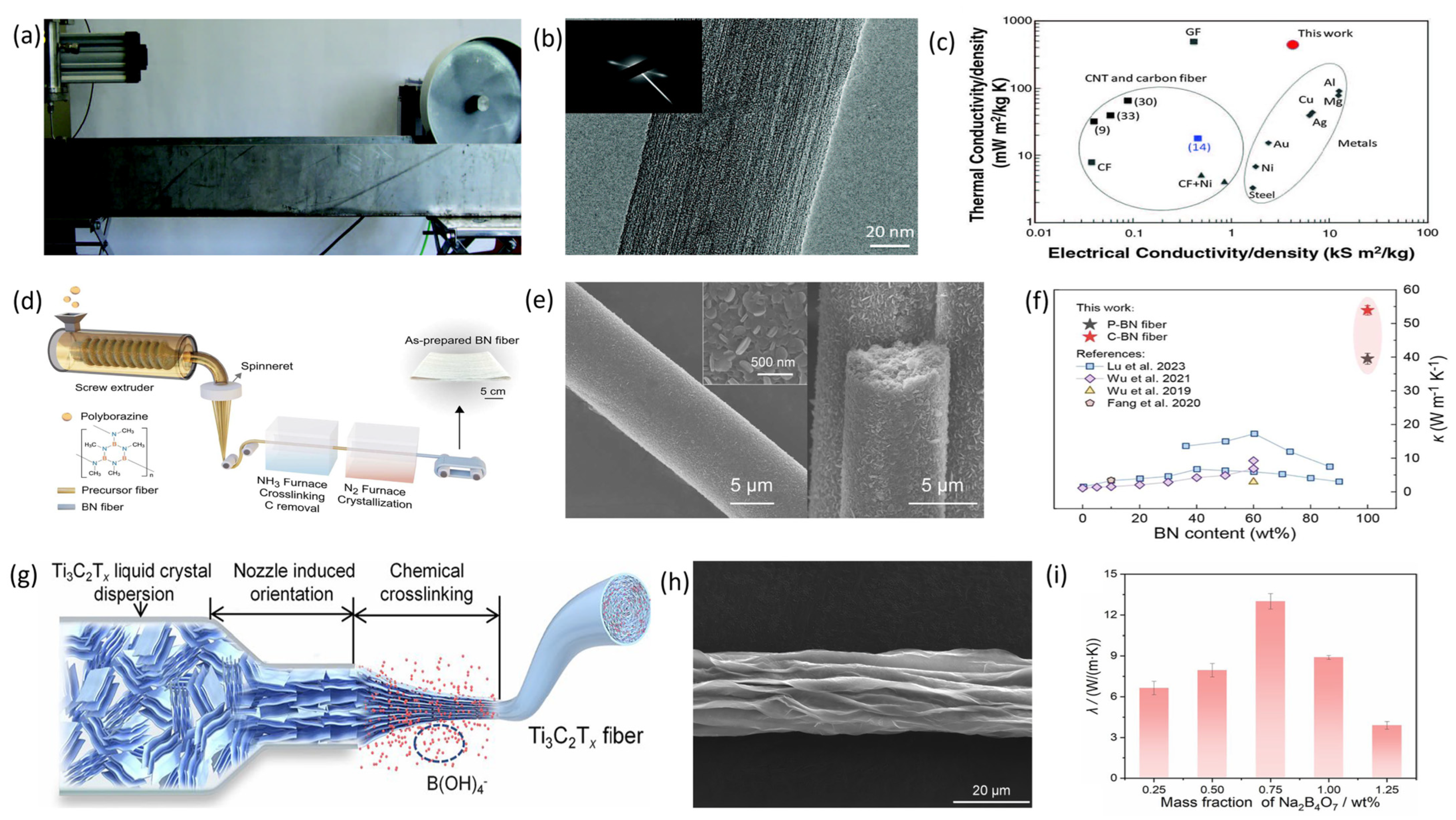 - Liao, P.; He, H.; Guo, H.; Niu, H.; Kang, L.; Tian, H.; Yao, Z.; Li, Z.; Wang, Y.; Zhang, L.Y.; et al. Highly Thermally Conductive Boron Nitride Fiber. ACS Nano 2025, 19, 16043–16052. [Google Scholar] [CrossRef]