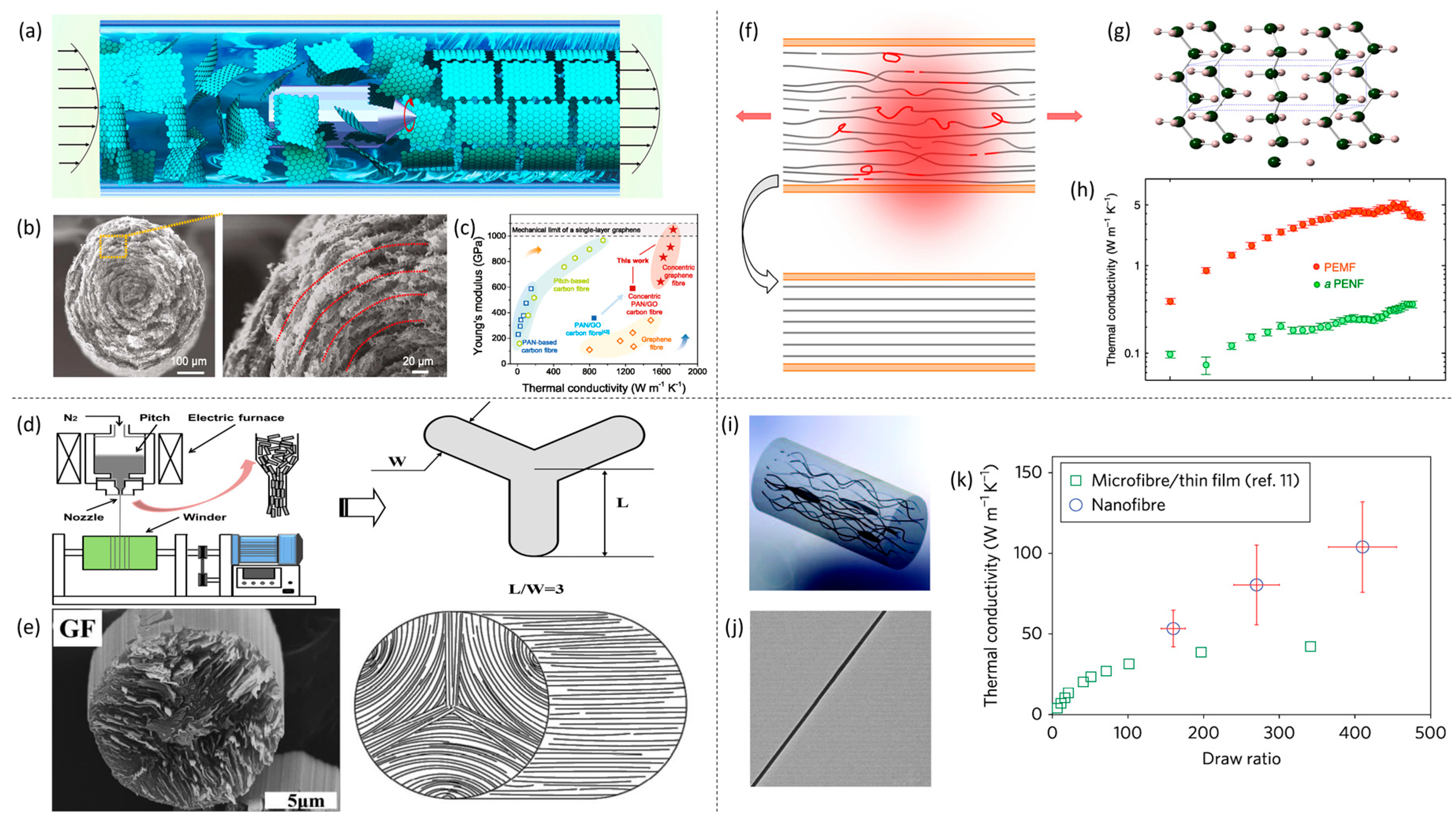 - Li, P.; Wang, Z.; Qi, Y.; Cai, G.; Zhao, Y.; Ming, X.; Lin, Z.; Ma, W.; Lin, J.; Li, H.; et al. Bidirectionally promoting assembly order for ultrastiff and highly thermally conductive graphene fibres. Nat. Commun. 2024, 15, 409. [Google Scholar] [CrossRef]