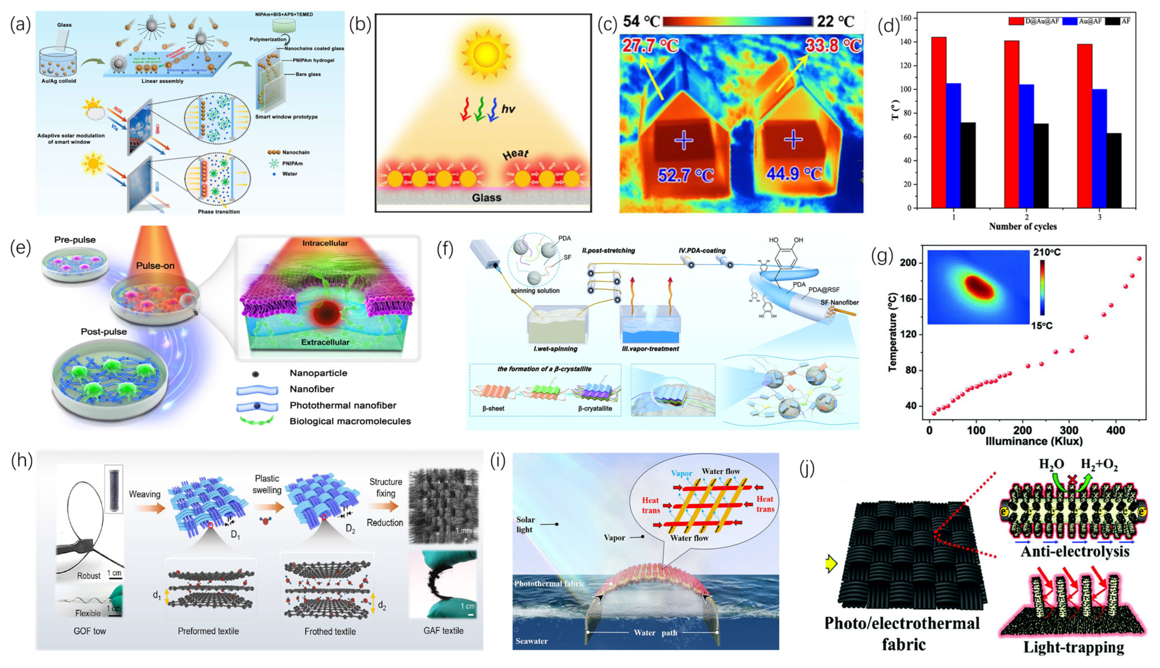 - Guo, M.; Yu, Q.; Wang, X.; Xu, W.; Wei, Y.; Ma, Y.; Yu, J.; Ding, B. Tailoring broad-band-absorbed thermoplasmonic 1D nanochains for smart windows with adaptive solar modulation. ACS Appl. Mater. Interfaces 2021, 13, 5634–5644. [Google Scholar] [CrossRef]