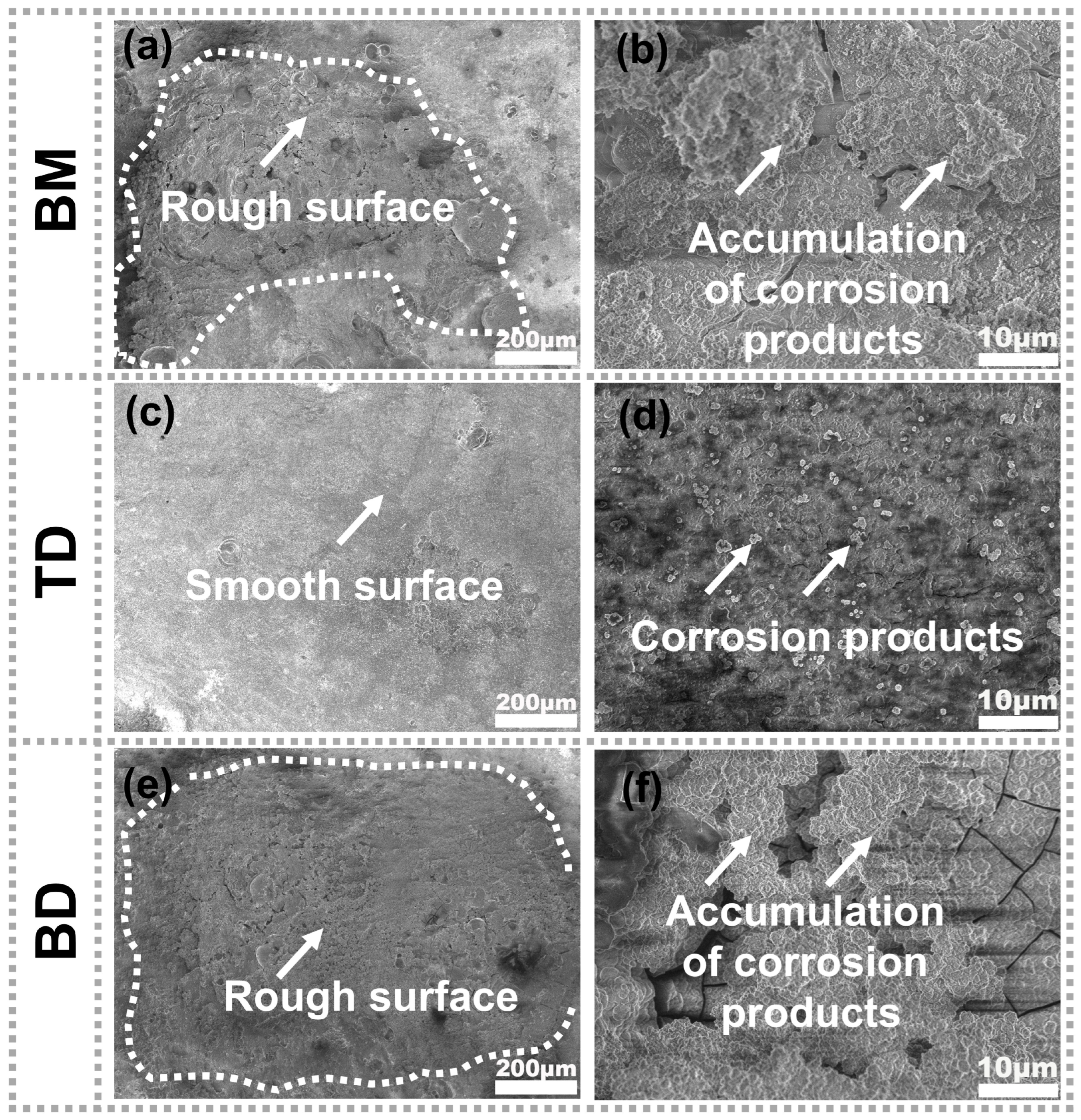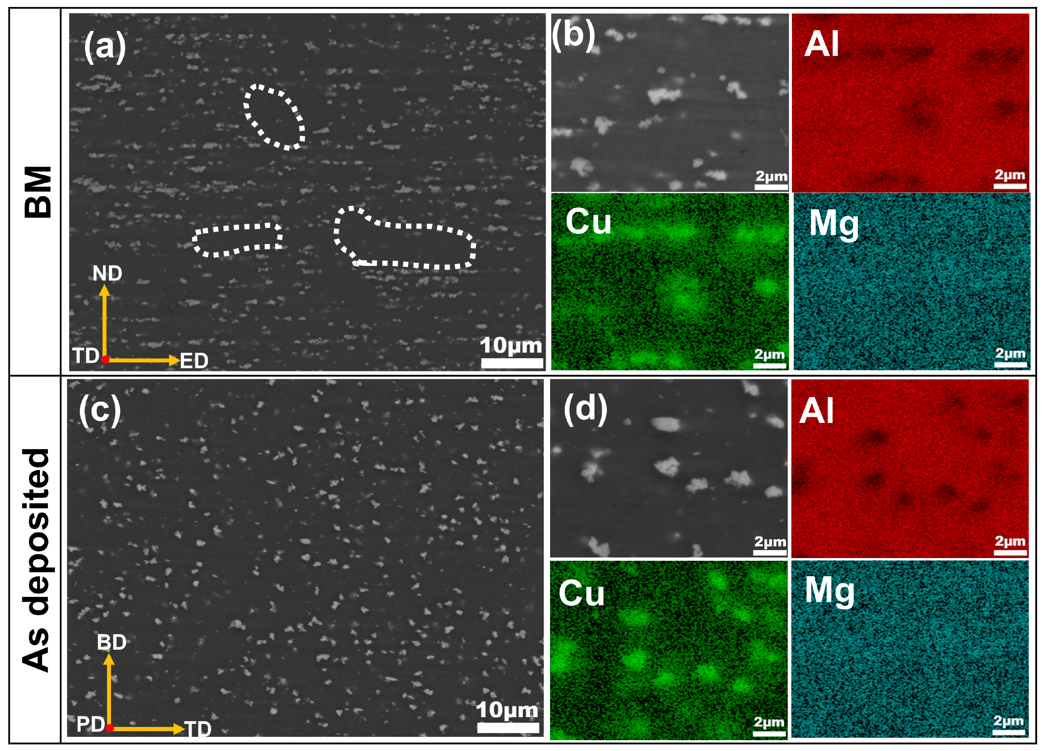 - The as-deposited composite demonstrated significantly enhanced corrosion resistance in the TD, exhibiting only 4% of the BM’s corrosion rate. This improvement is attributed to precipitate dissolution, which mitigates galvanic corrosion and promotes more uniform corrosion.