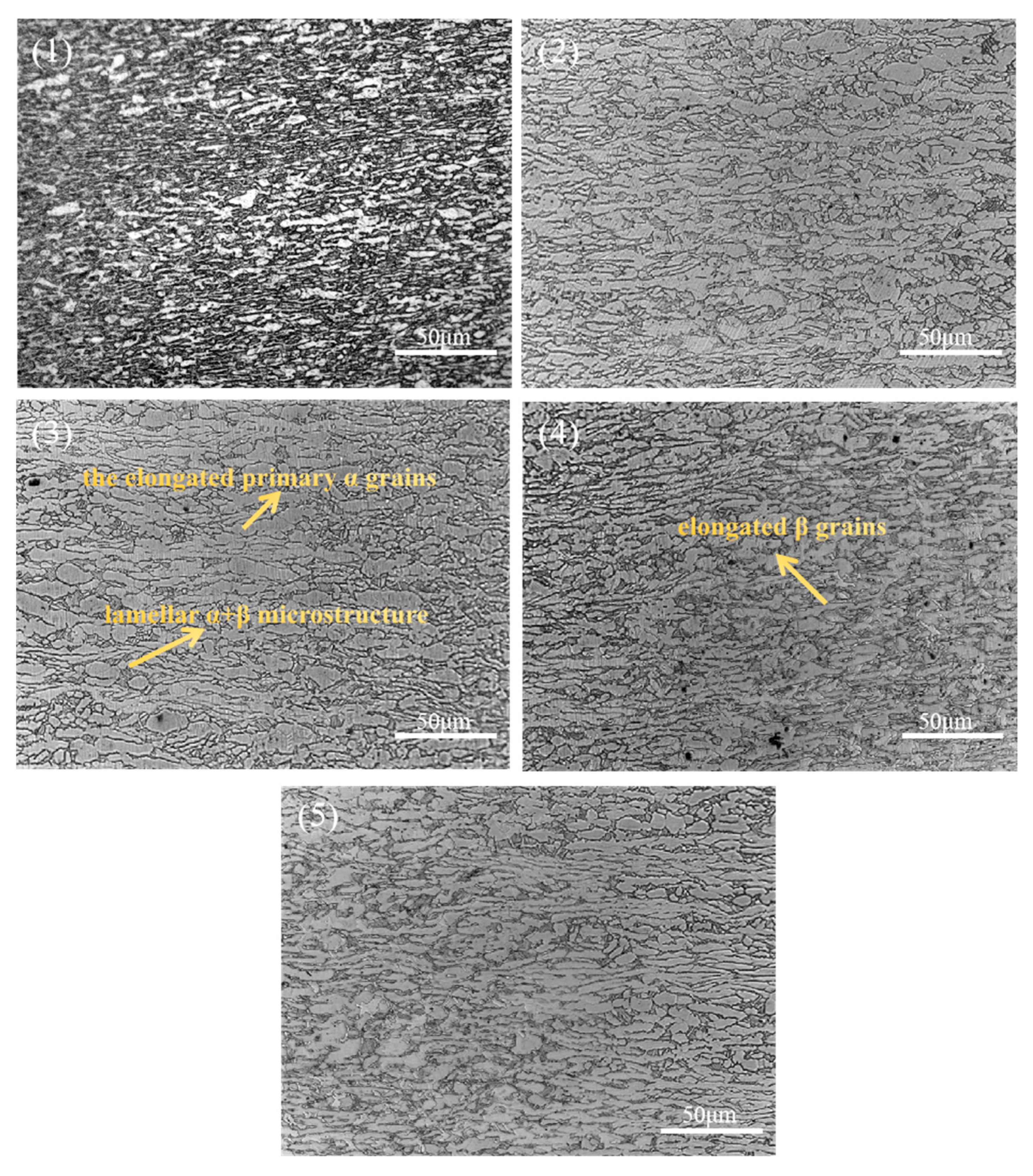 - Furuhara, T.; Poorganji, B.; Abe, H.; Maki, T. Dynamic recovery and recrystallization in titanium alloys by hot deformation. JOM 2007, 59, 64–67. [Google Scholar] [CrossRef]
