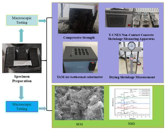 Isothermal calorimetry was employed to determine the heat of hydration using a TAM Air isothermal calorimeter. To minimize experimental error, all materials were preconditioned at 20 °C prior to testing. Freshly mixed paste was immediately transferred to the instrument’s channels and maintained at 20 °C for 168 h of continuous monitoring.