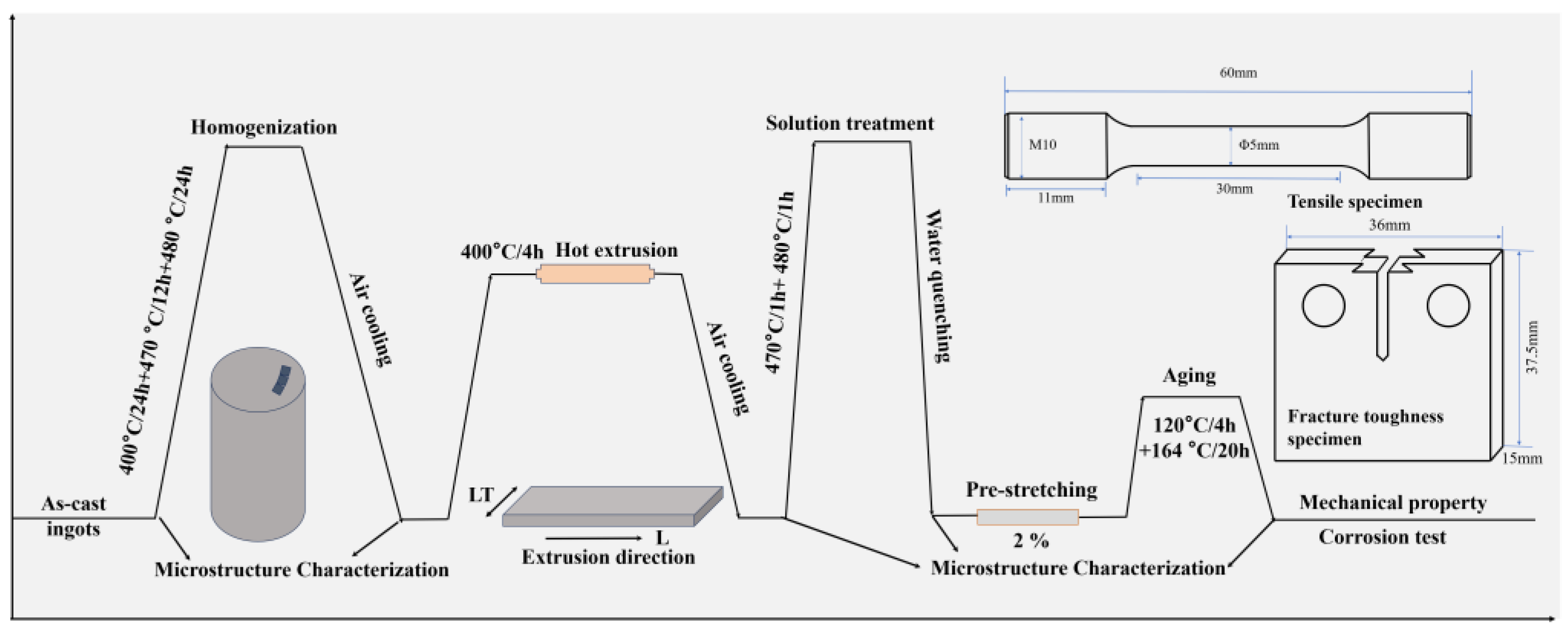- Si has a more profound negative impact on mechanical properties than Fe. Fe primarily reduces ductility and fracture toughness through Fe-rich phases that initiate microcracks, with minimal effect on strength. Si not only forms brittle Mg2Si phases that impair toughness but also significantly reduces the quantity of strengthened phases (GPII zone, η’ phase) by consuming Mg elements in the matrix, leading to a comprehensive and severe decline in strength, plasticity, and toughness.