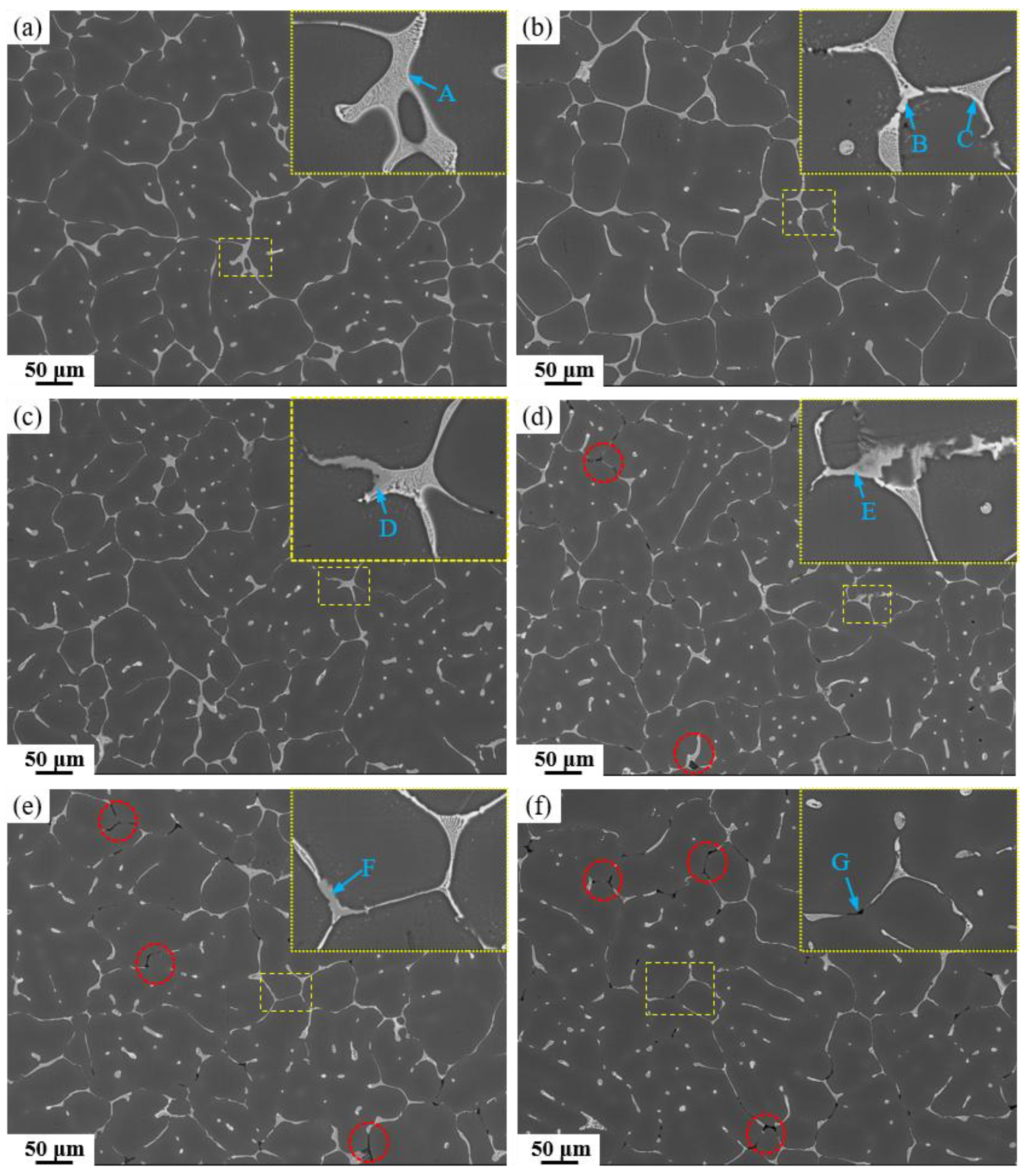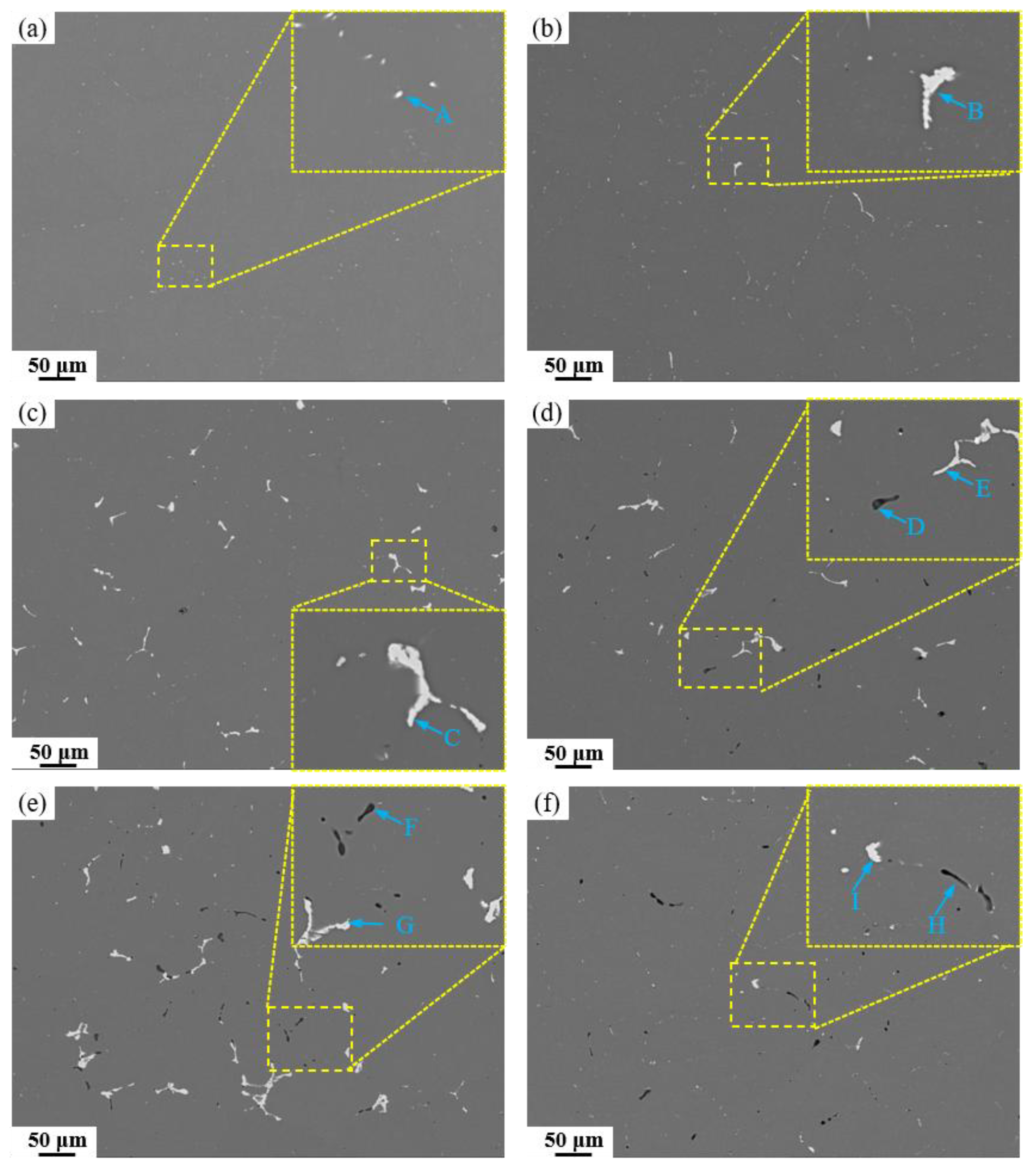 3.1. Microstructure Characteristics of As-Cast Alloys