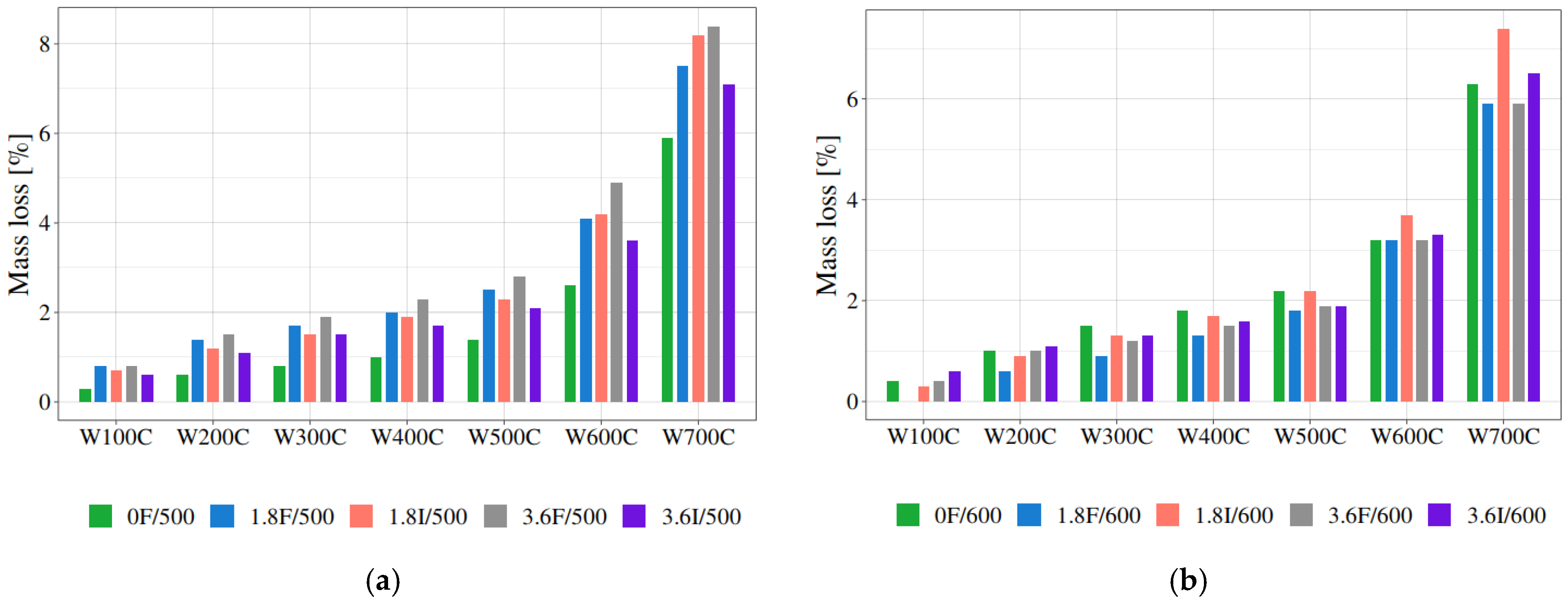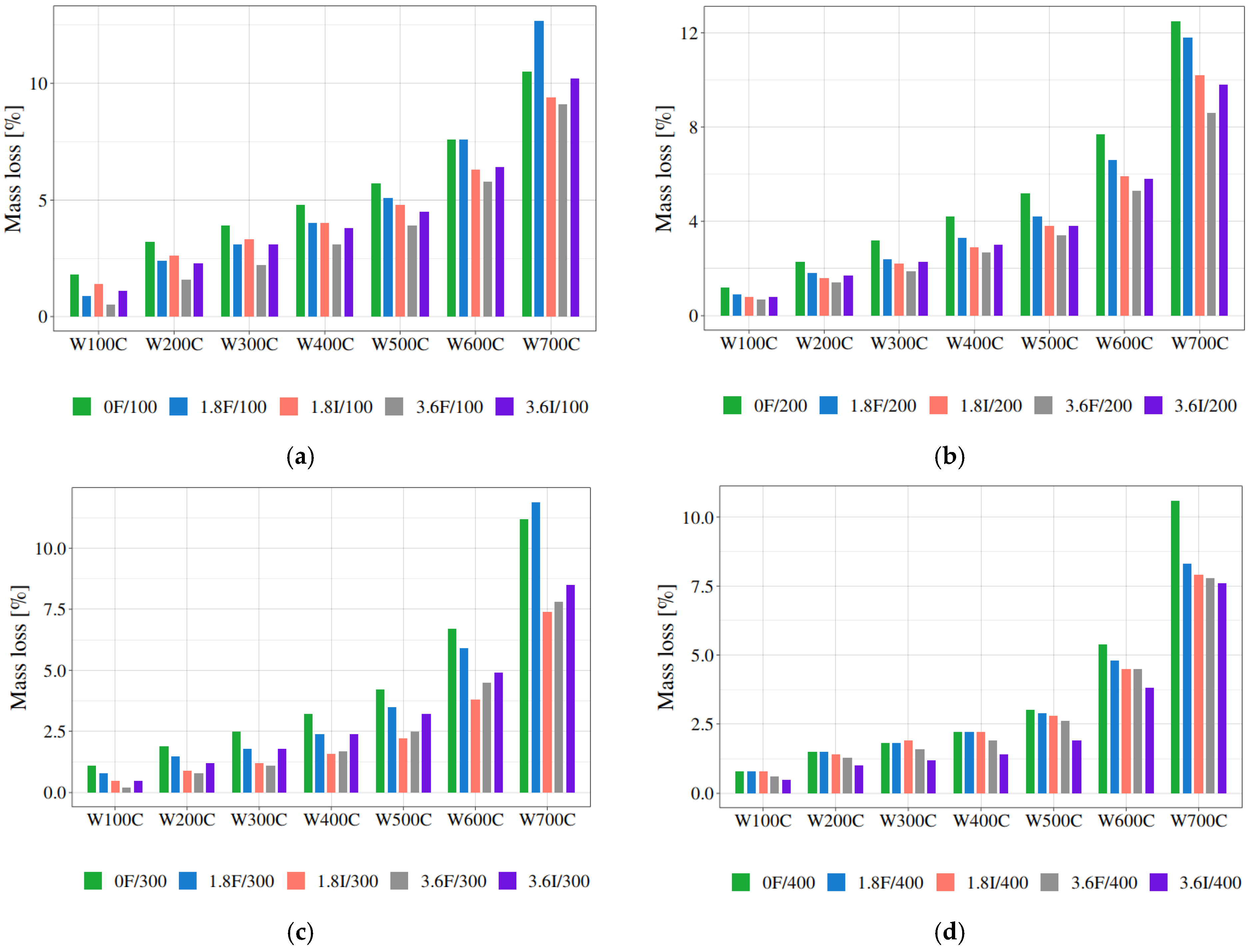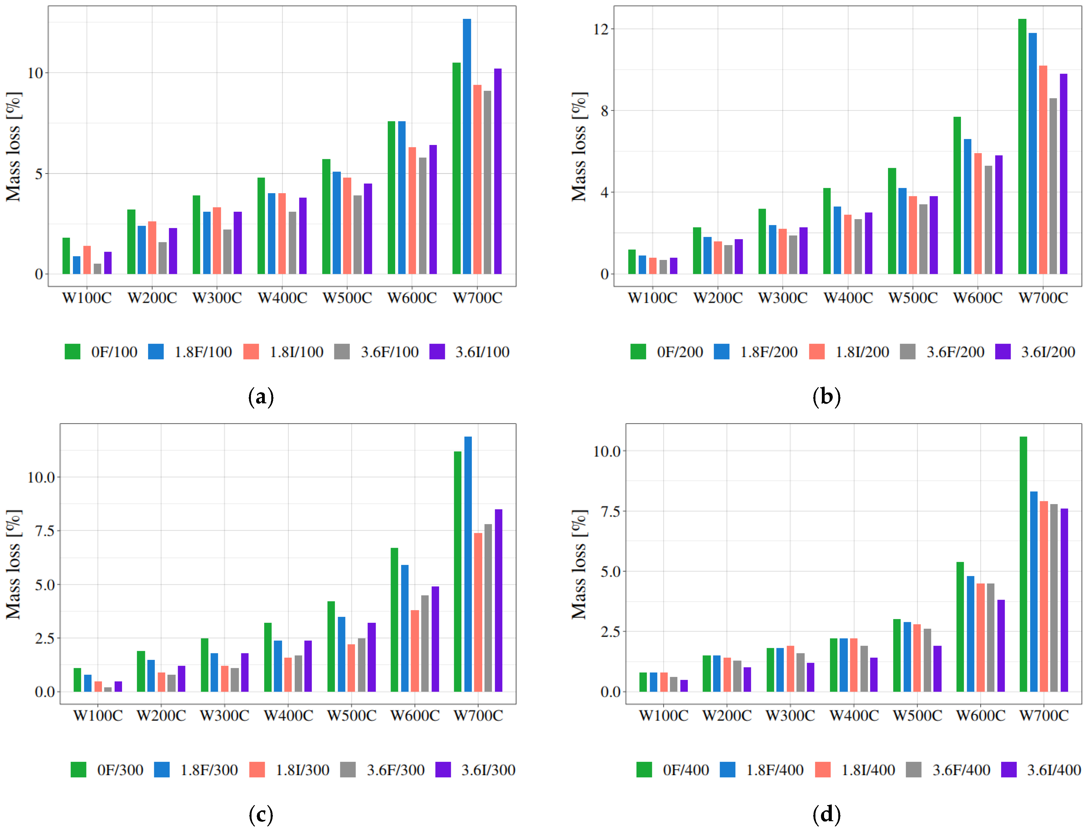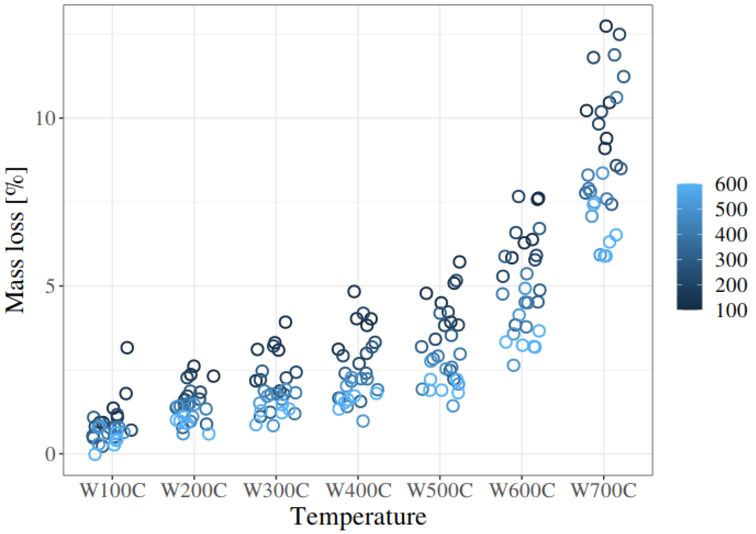 | W400C H0: mass loss within the group in column is greater | d1.8 | 0.24 | -- |