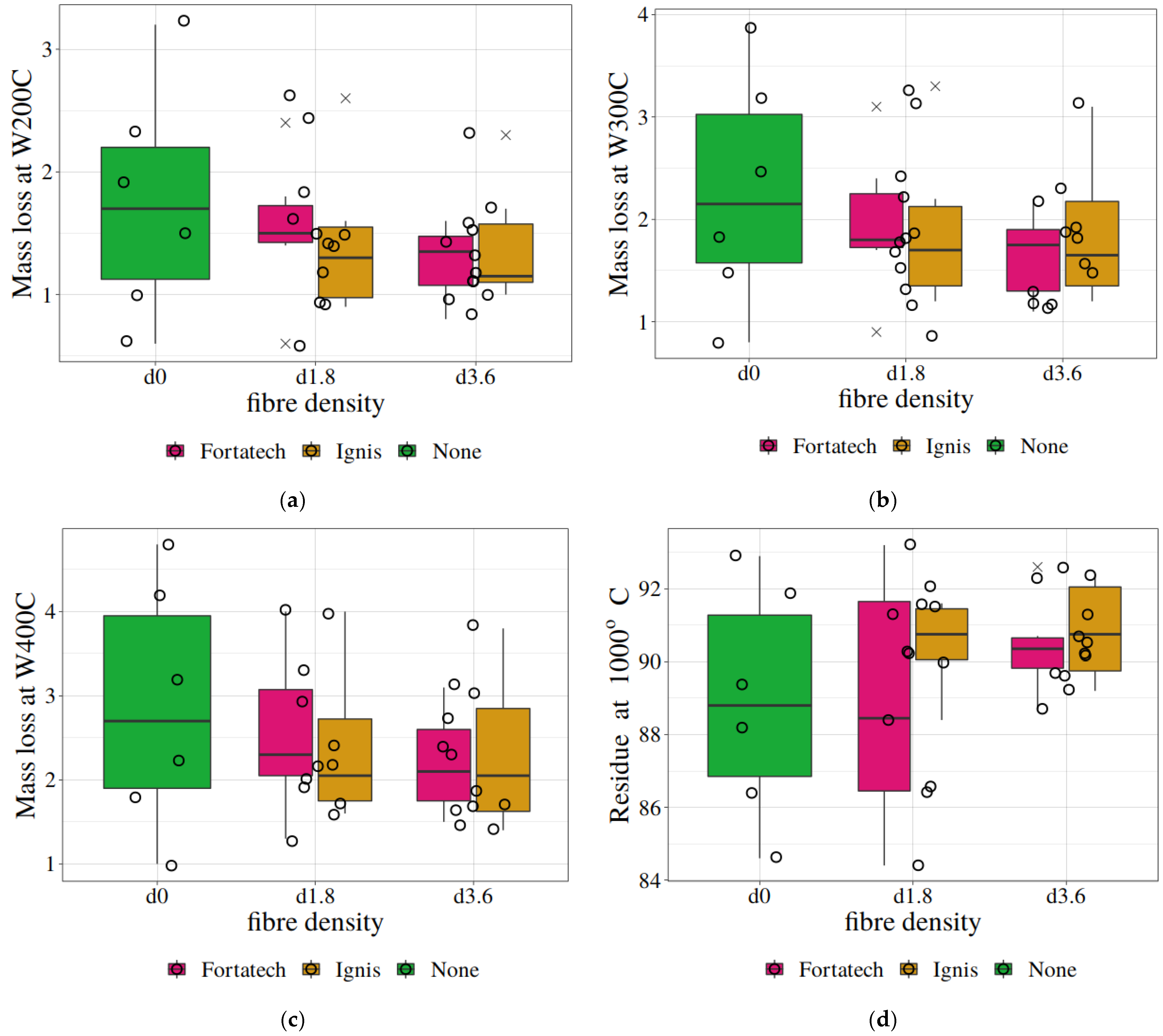 | Residue at 1000 °C H0: residue within the group in column is less | d1.8 | 0.73 | -- |