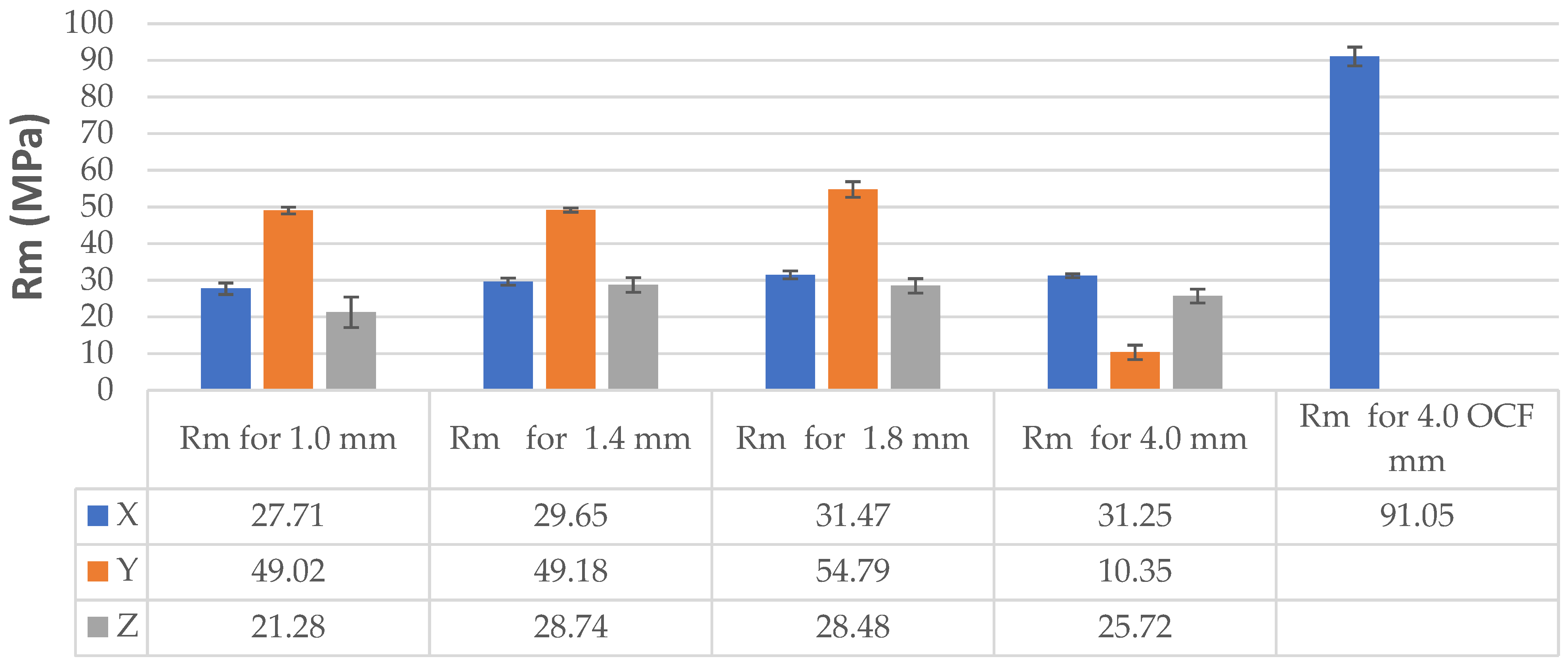 - Bochnia, J.; Blasiak, M.; Kozior, T. Tensile Strength Analysis of Thin-Walled Polymer Glass Fiber Reinforced Samples Manufactured by 3d Printing Technology. Polymers 2020, 12, 2783. [Google Scholar] [CrossRef] [PubMed]