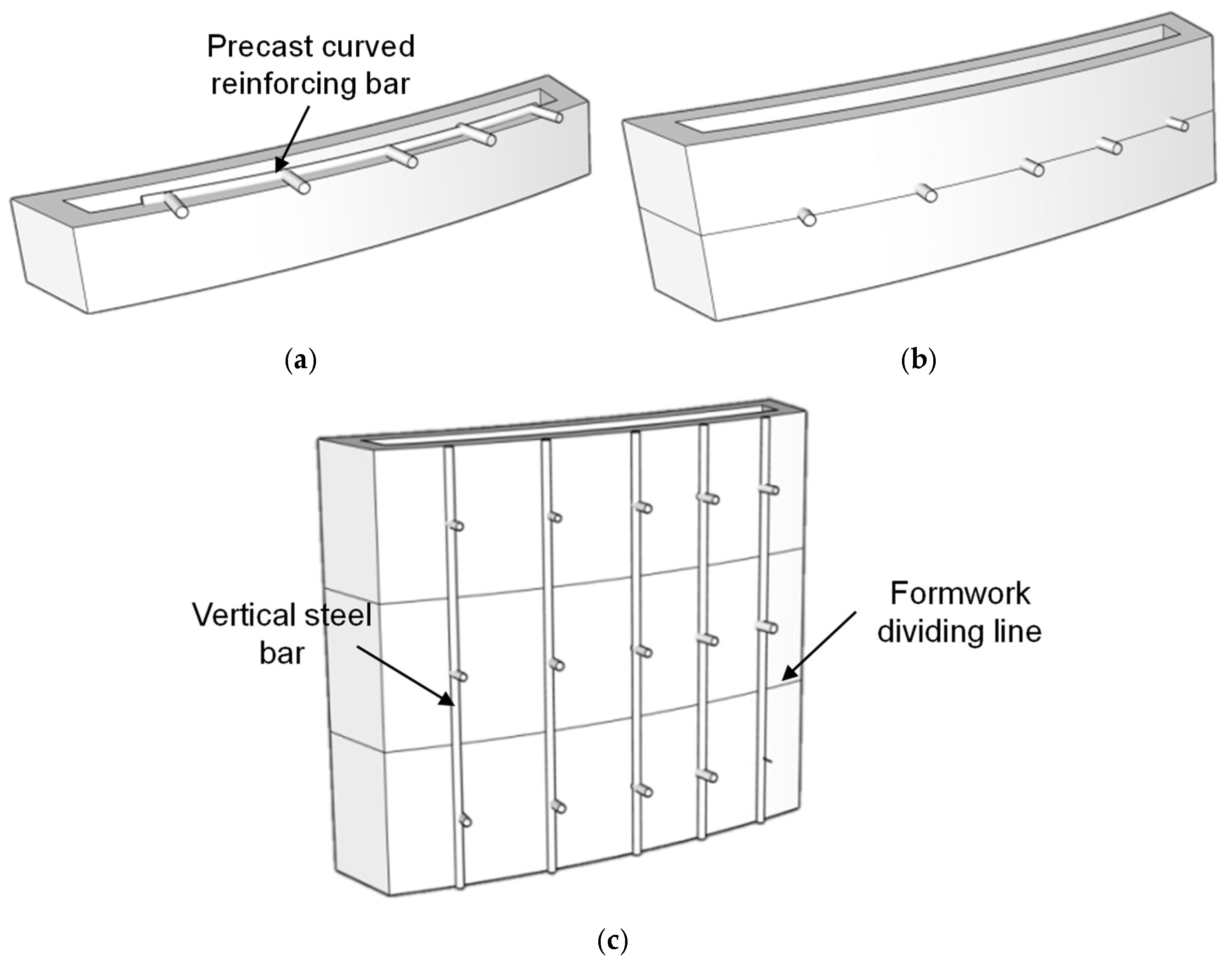 - Liebringshausen, A.; Eversmann, P.; Göbert, A. Circular, zero waste formwork-Sustainable and reusable systems for complex concrete elements. J. Build. Eng. 2023, 80, 107696. [Google Scholar] [CrossRef]