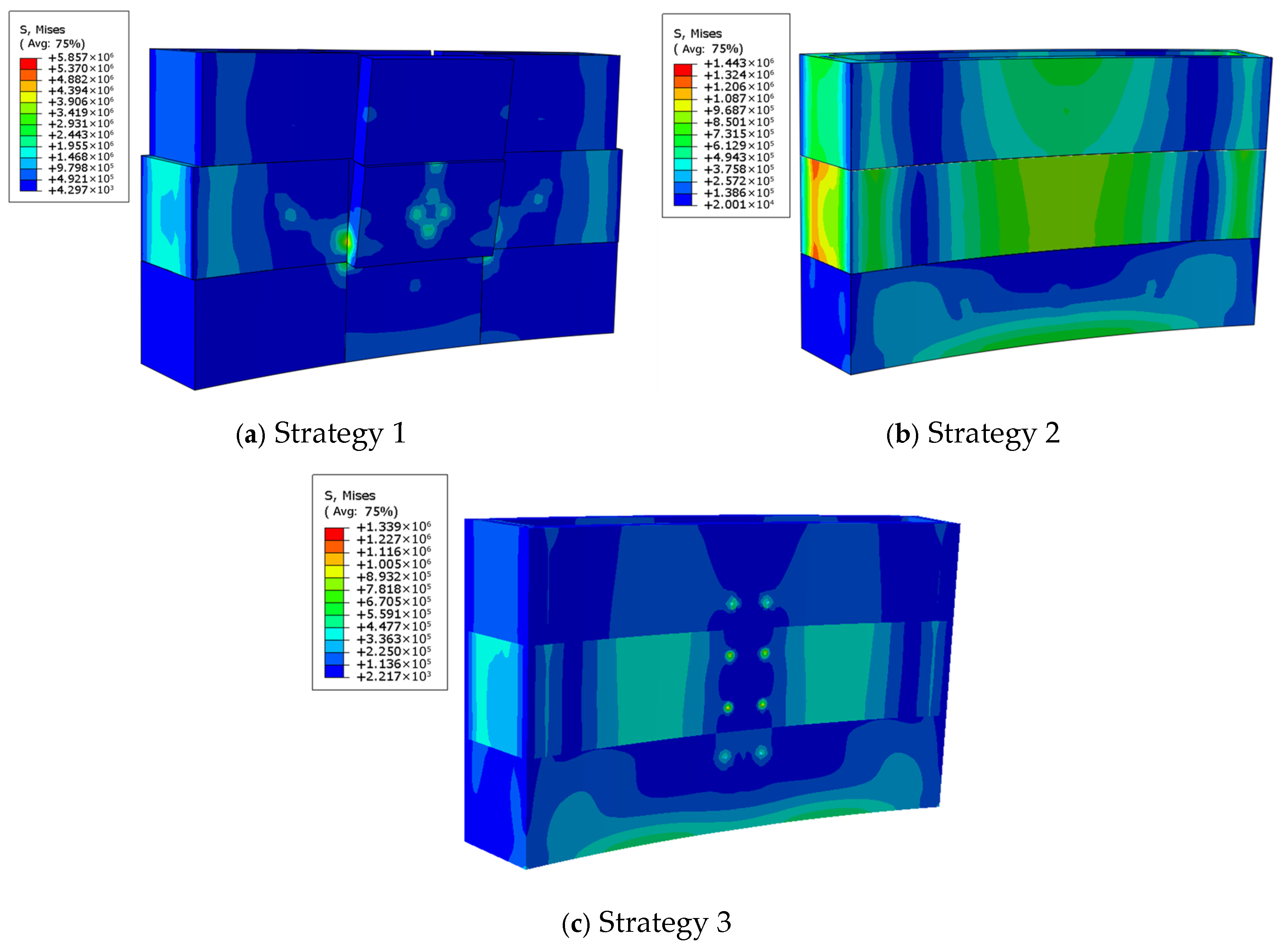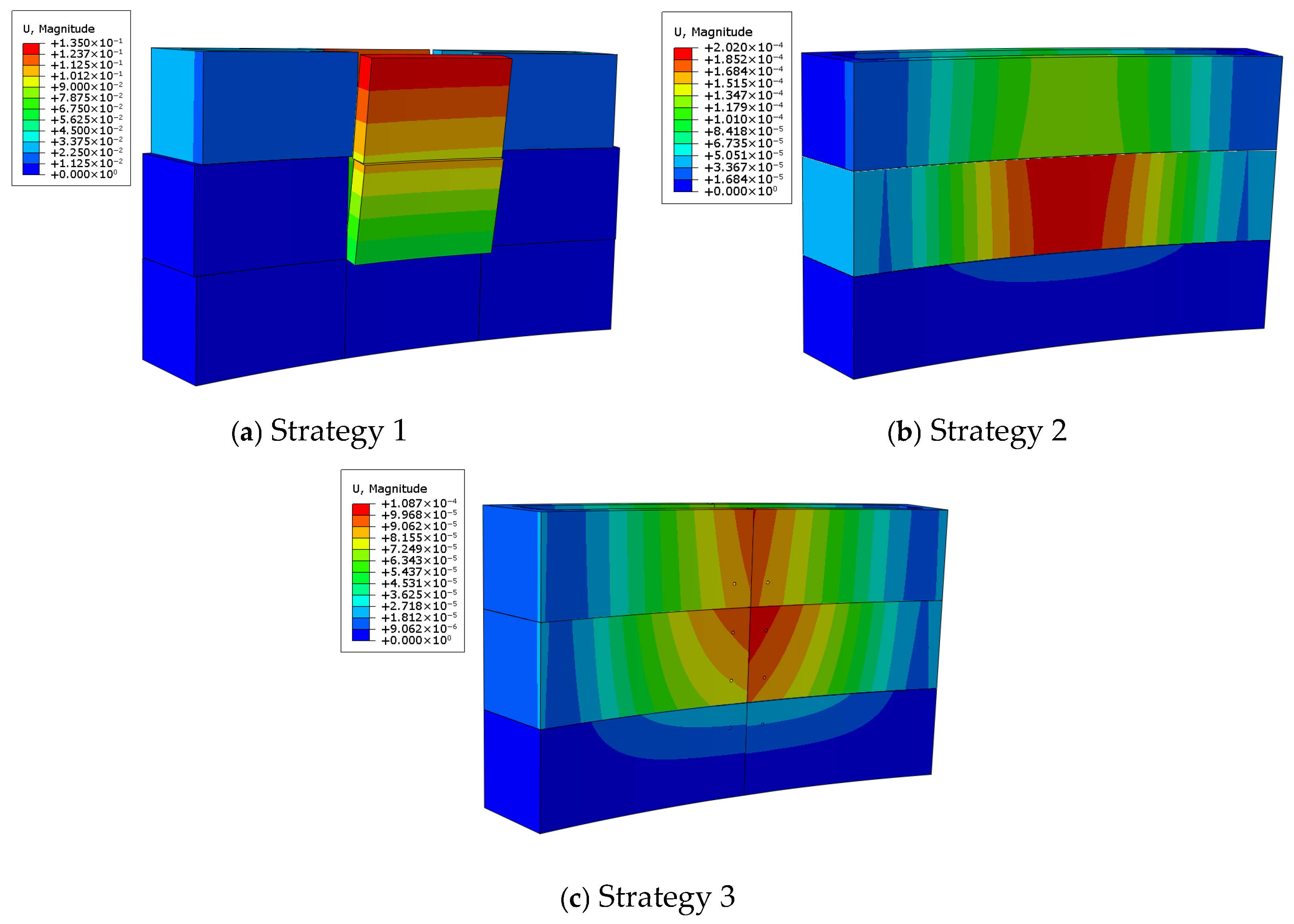 - All three connection strategies meet strength requirements, but Strategy 1 fails the deflection limit. Strategies 2 and 3 satisfy stiffness criteria, with Strategy 3 showing the smallest deformation. A combined use of Strategies 2 and 3 further enhances system stability, offering practical guidance for engineering application of reusable 3D-printed formwork.