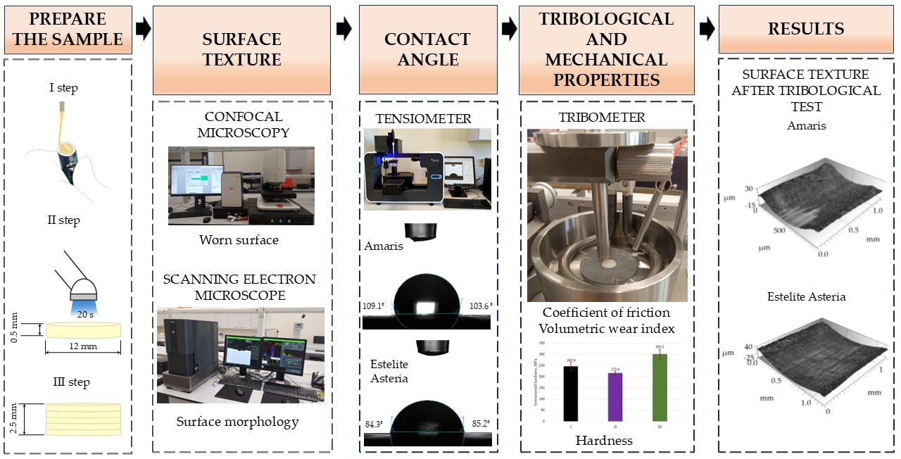 34]. The authors demonstrated that filler structure and surface topography have a direct impact on the tribological properties of composites used in dental restorations.