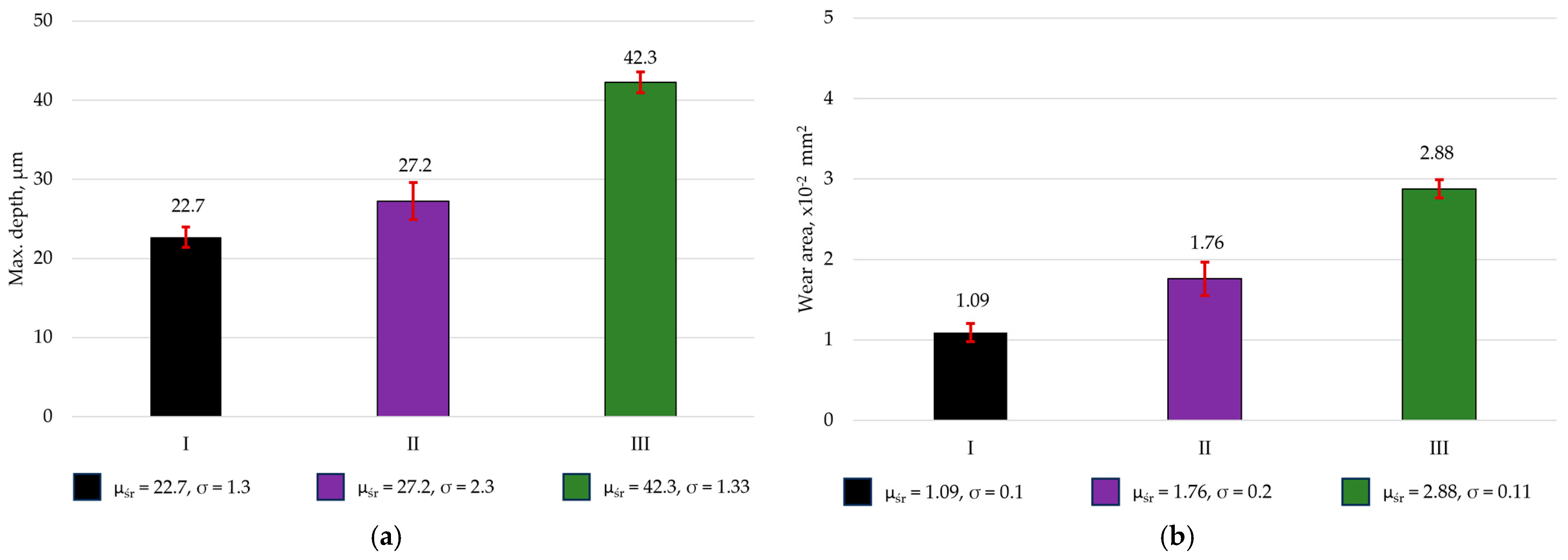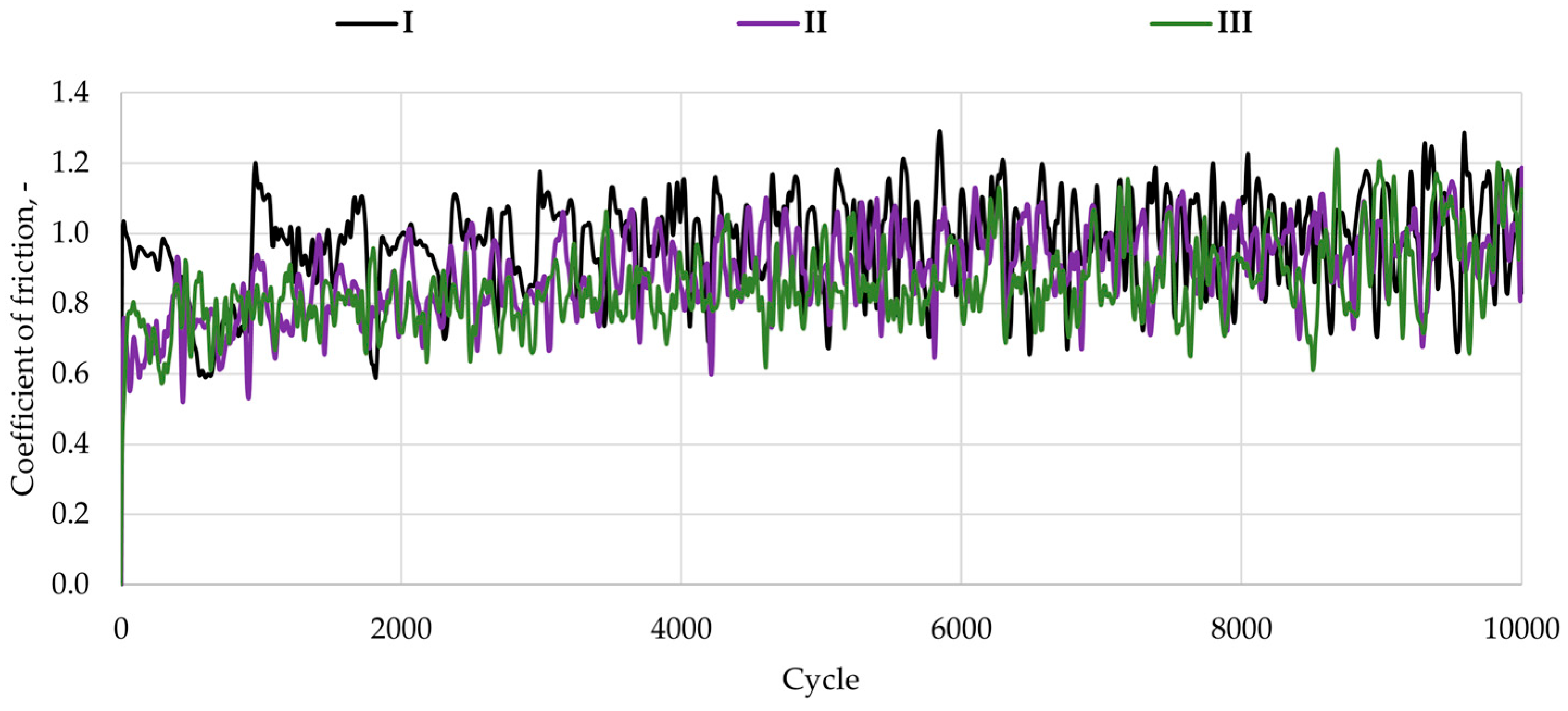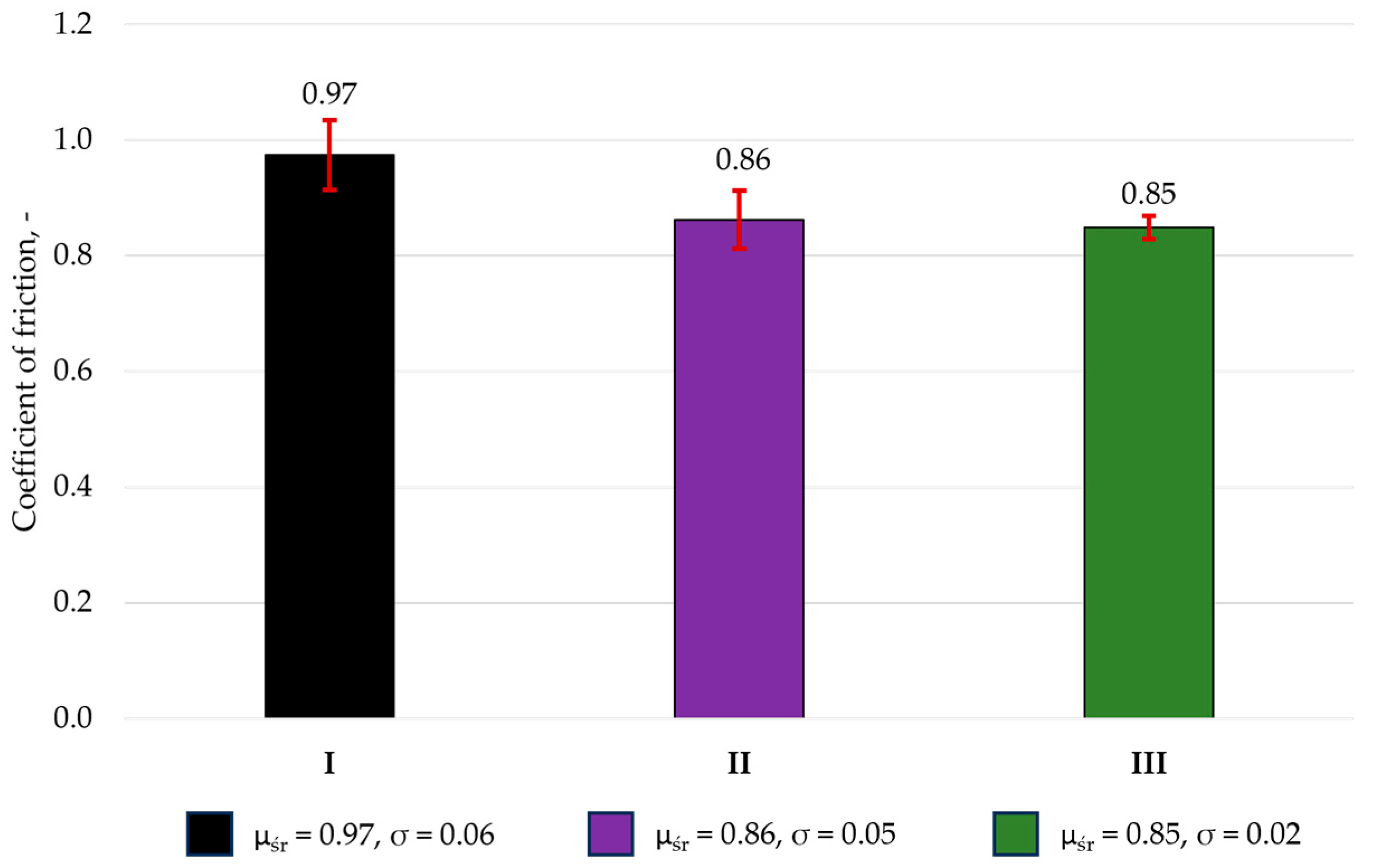 Figure 5 shows the average friction coefficient values, calculated from three measurement series.