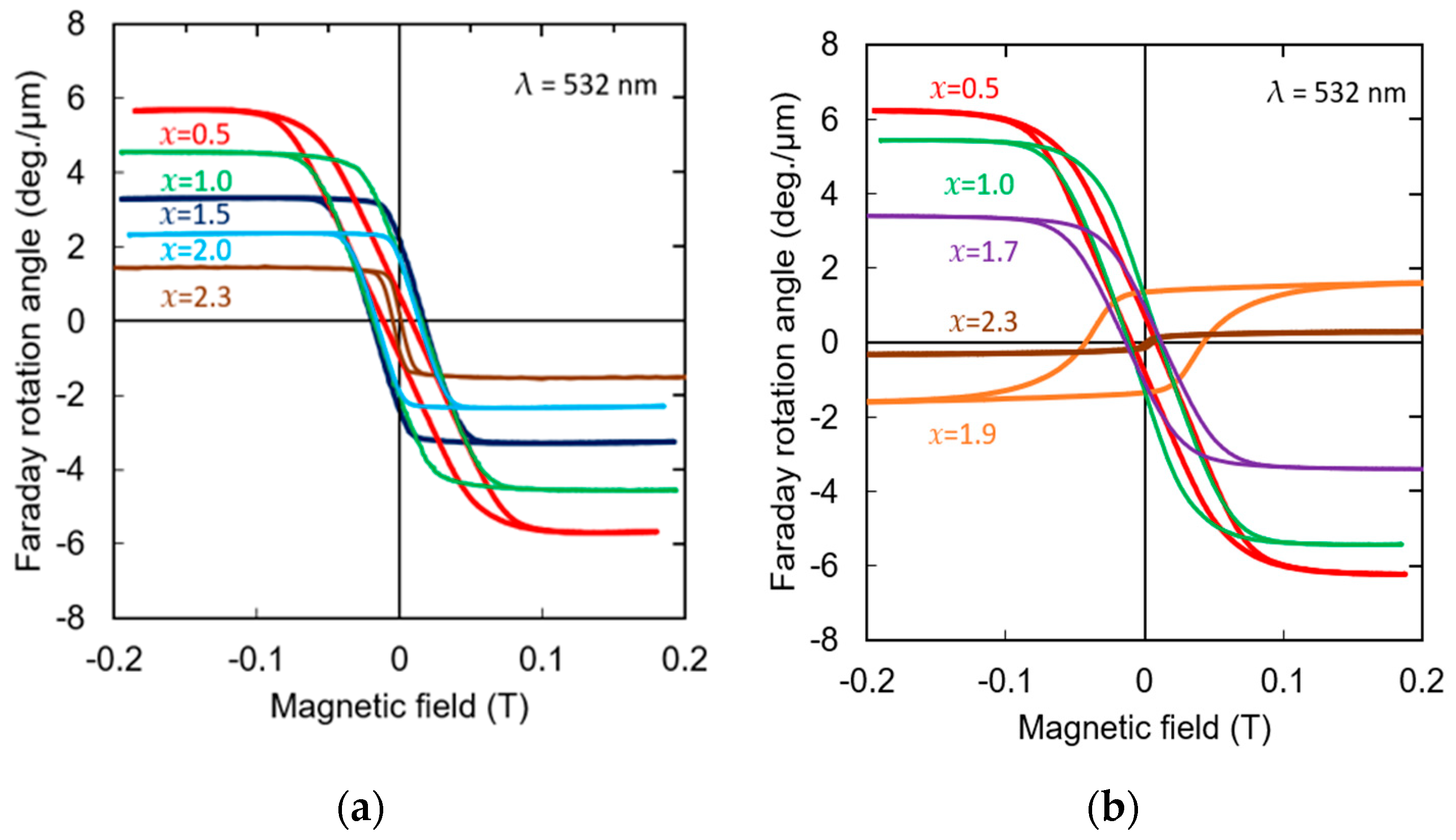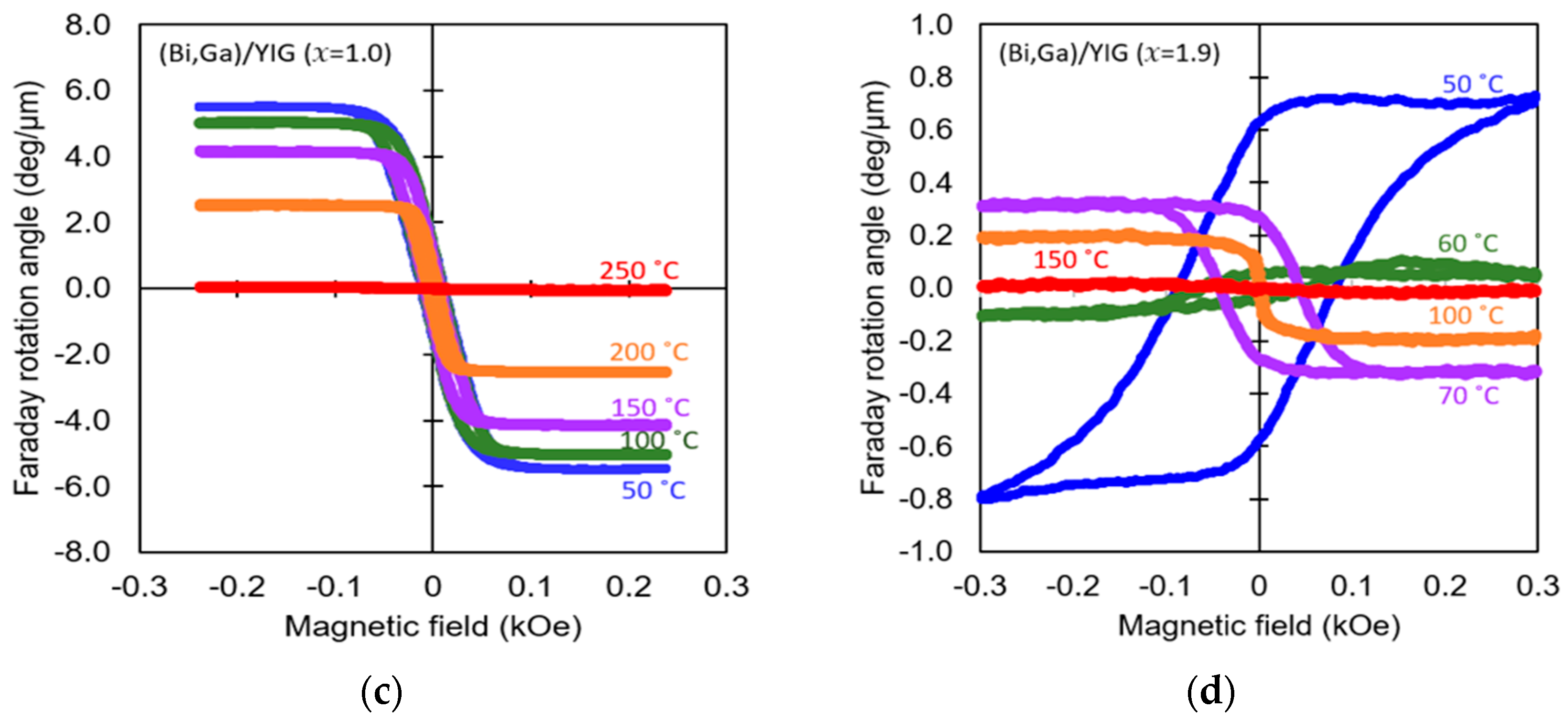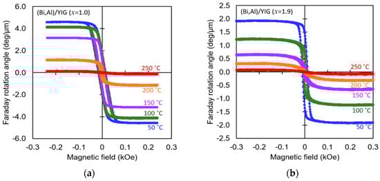 - Umezawa, H.; Yokoyama, Y.; Koshizuka, N. Temperature dependence of Faraday rotation in Bi-substituted terbium iron garnet films. J. Appl. Phys. 1988, 63, 3113–3115. [Google Scholar] [CrossRef]