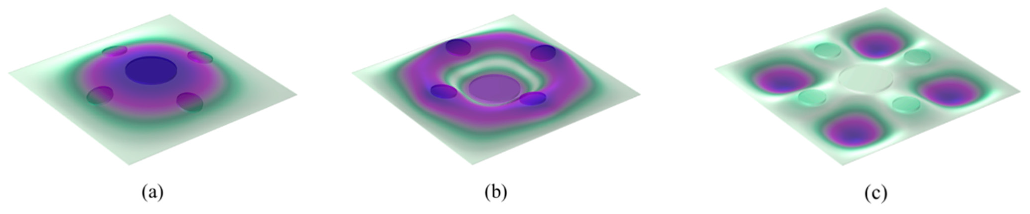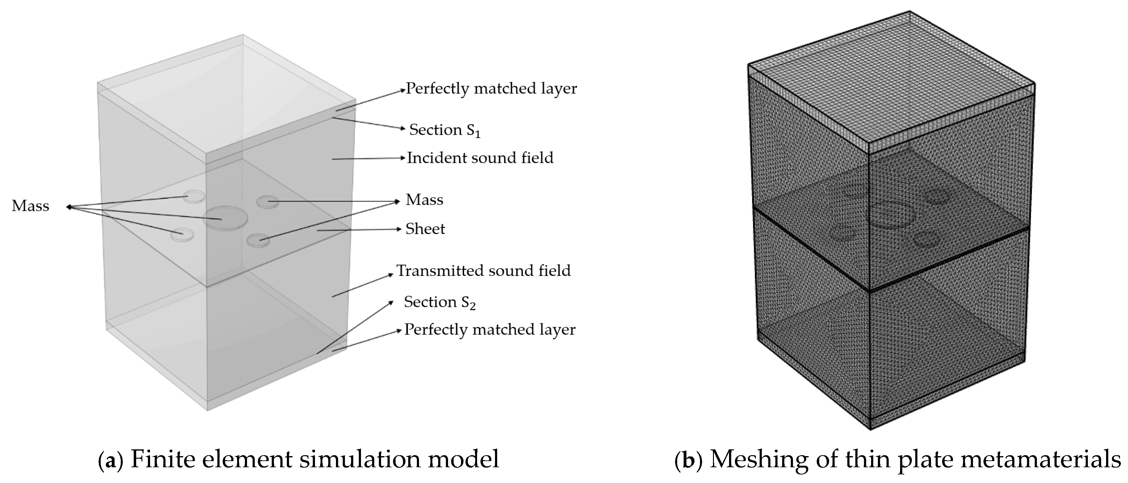 2.2. Simulation Verification of Sound Insulation of Thin Plate Metamaterials