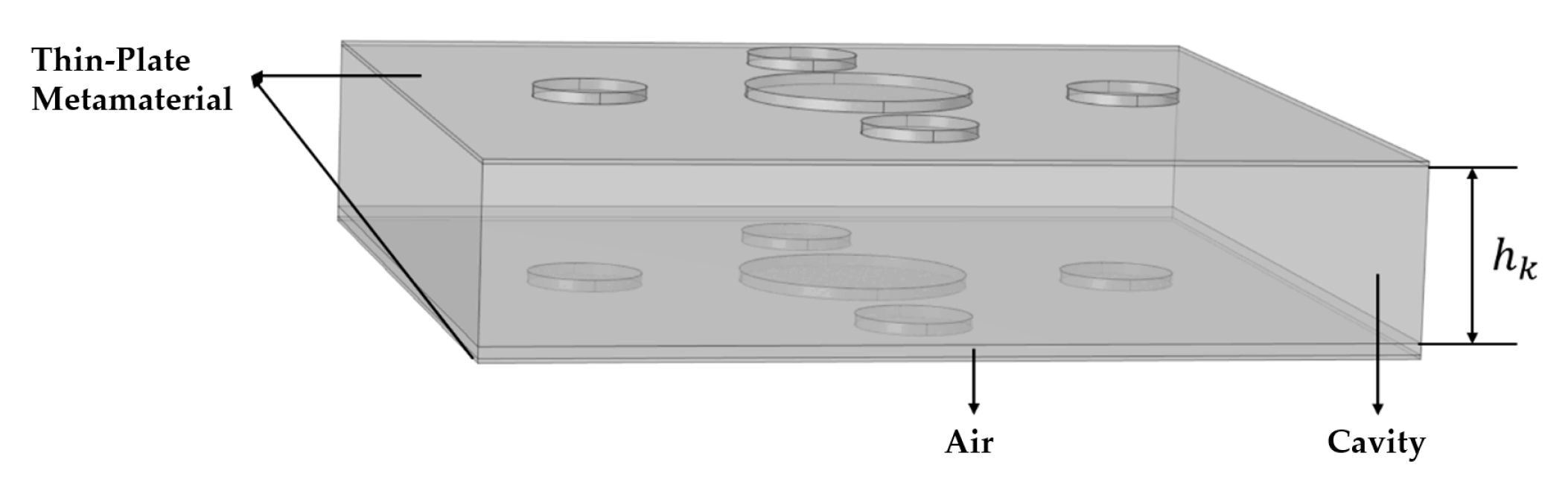 - Cho, J.; Langfeldt, F. Scaling analysis of thin plate-like acoustic metamaterials. Phys. Lett. A 2025, 555, 130799. [Google Scholar] [CrossRef]
