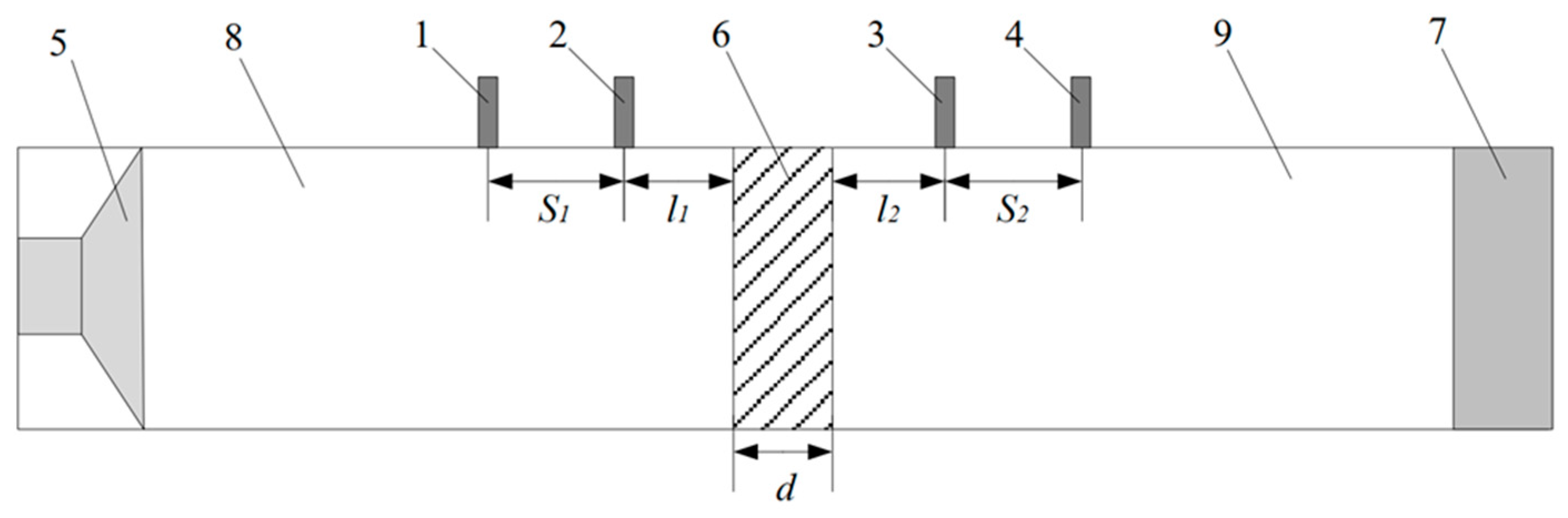 - GB/Z 27764-2011; Acoustics-Determination of Sound Transmission Loss in Impedance Tubes-Transfer Matrix Method. Standards Press of China: Beijing, China, 2011.