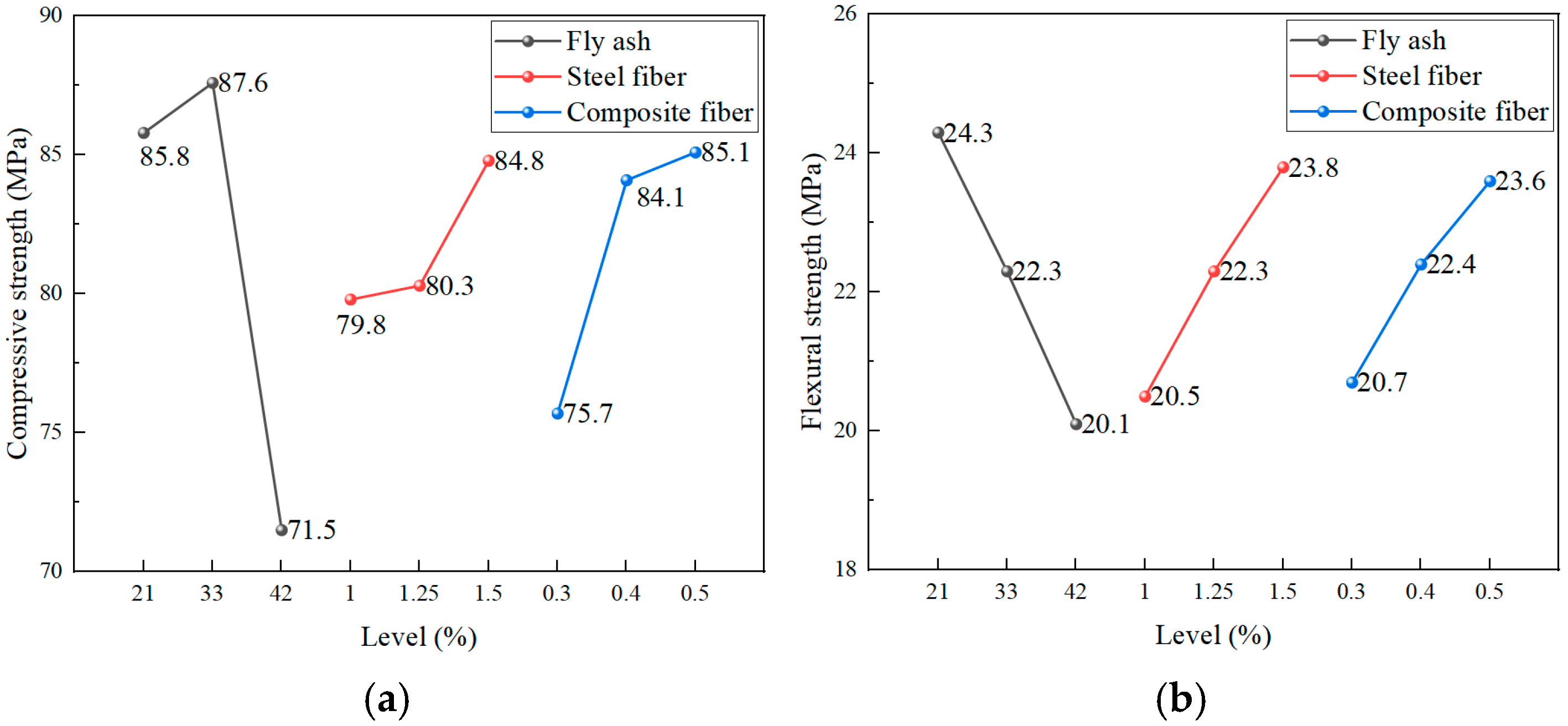 | Index | Level | Fly Ash | Steel Fiber | Composite Fiber |