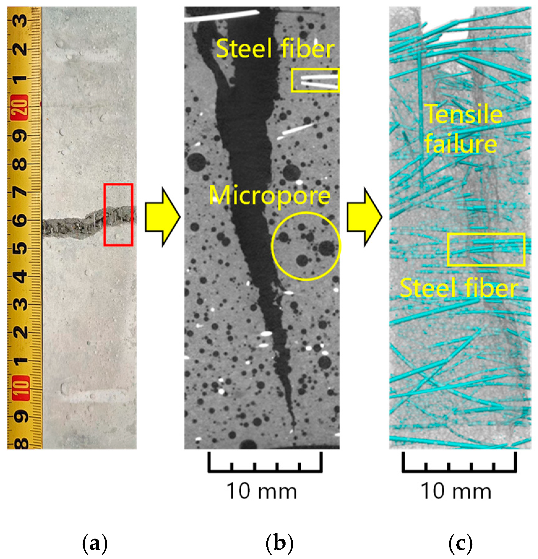 - Microstructural Mechanisms of Ductility: SEM and X-CT analyses provide physical evidence connecting macroscopic performance to micromorphology. The enhancement in ductility is attributed to a densified ITZ and a multi-scale crack-bridging network. The hybrid fibers were observed to alter the failure mode from brittle fracture to controlled ductile rupture, physically supporting the multi-crack propagation behavior observed in the mechanical tests.