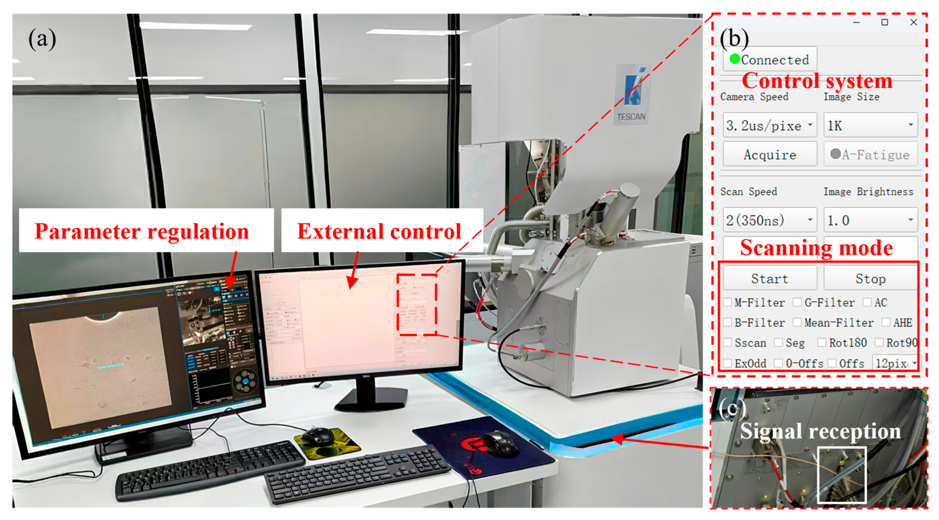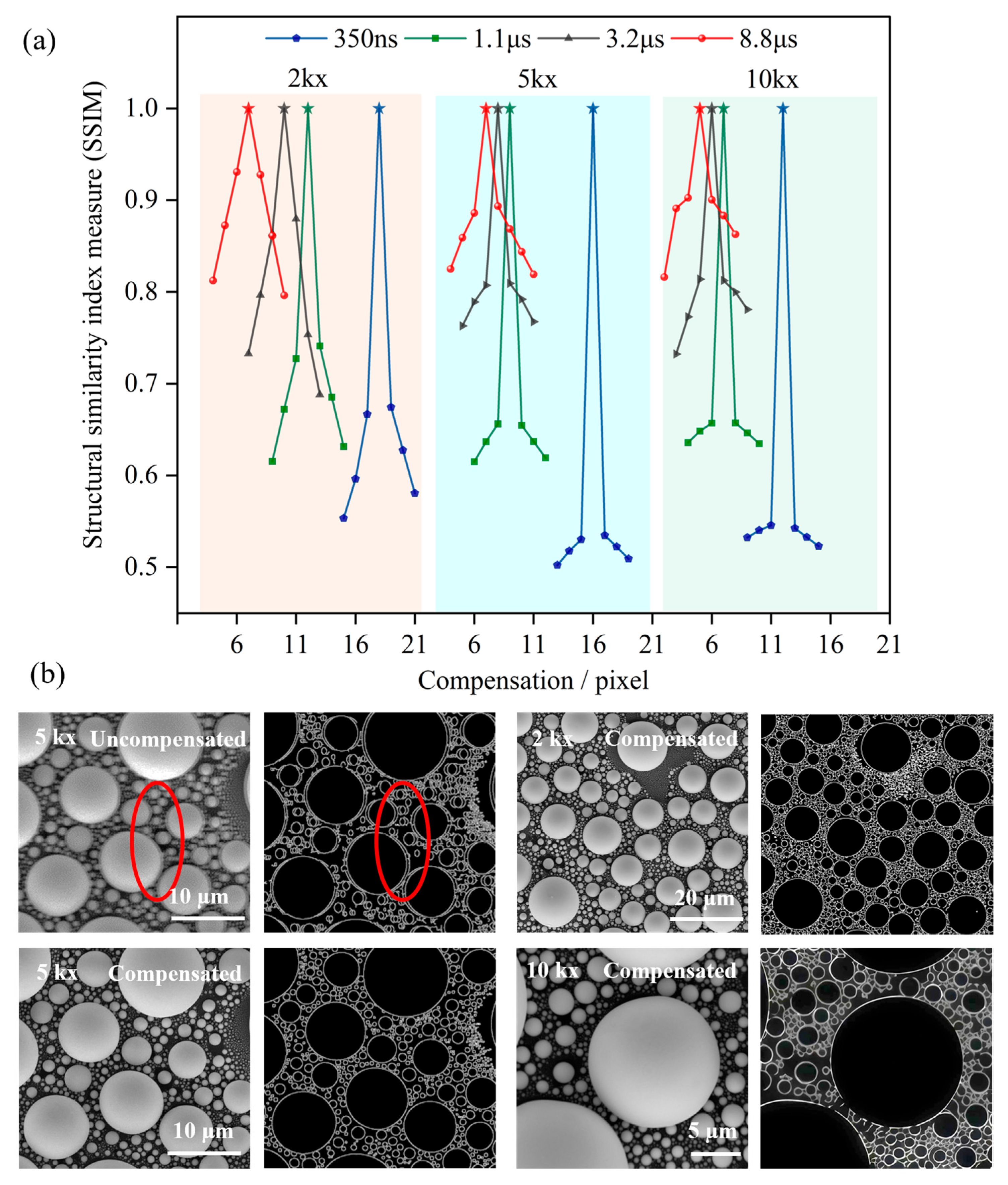 - Liu, L.; Zhang, Y.; Wang, N.; Tang, L.; Yan, C.; Zhou, J.; Gao, W.; Zhang, Y.; Lv, J.; Zhang, Z. Image drift compensation in scanning electron microscopy facilitated by an external scanning and imaging system. Micron 2025, 196–197, 103848. [Google Scholar] [CrossRef]