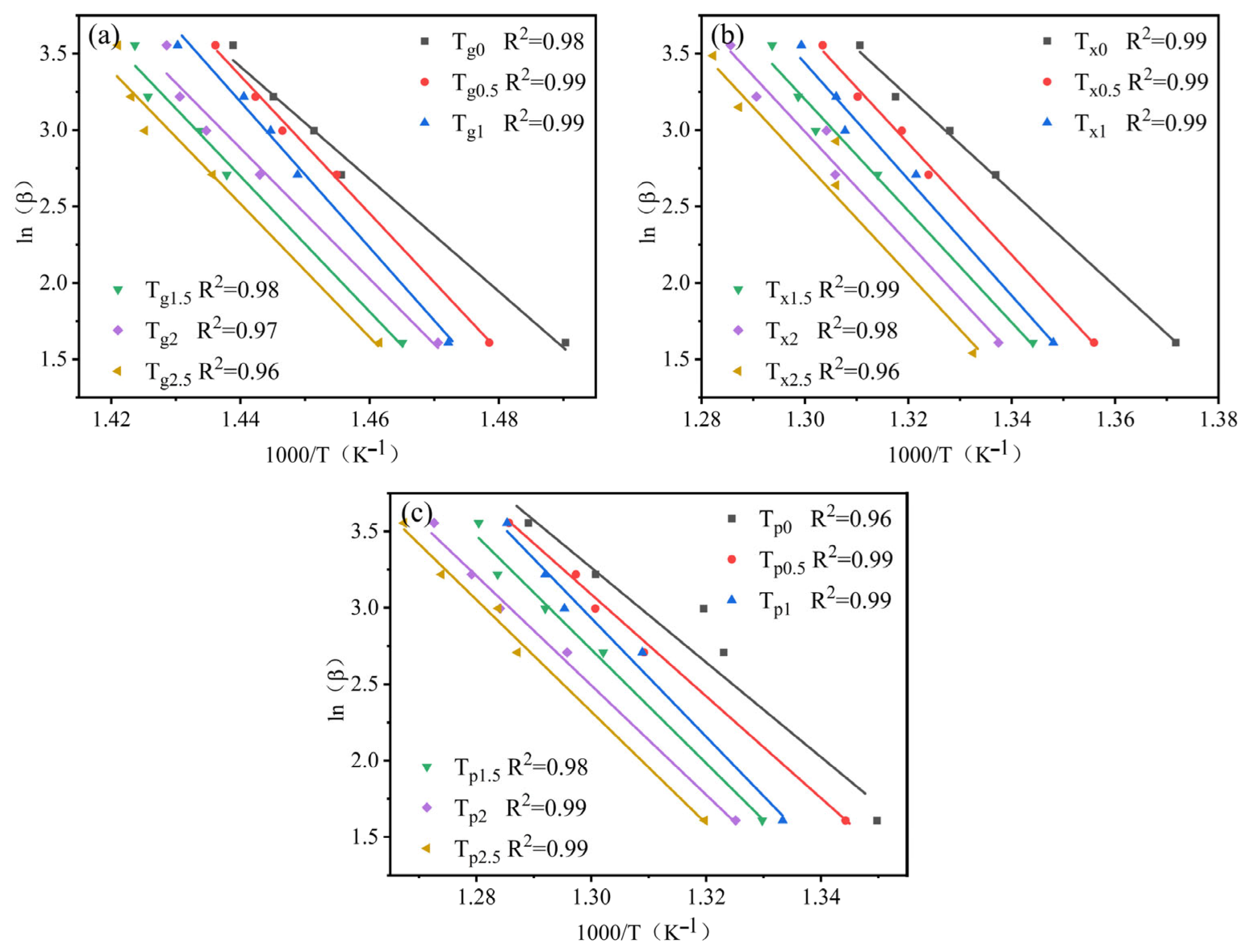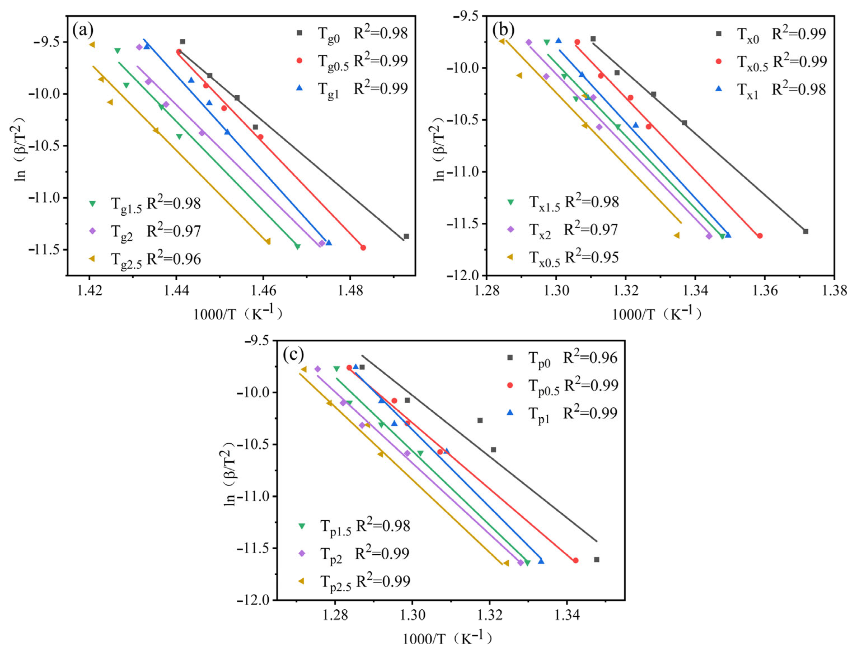 - Kong, L.H.; Gao, Y.L.; Song, T.T.; Wang, G.; Zhai, Q.J. Non-isothermal crystallization kinetics of FeZrB amorphous alloy. Thermochim. Acta 2011, 522, 166–172. [Google Scholar] [CrossRef]