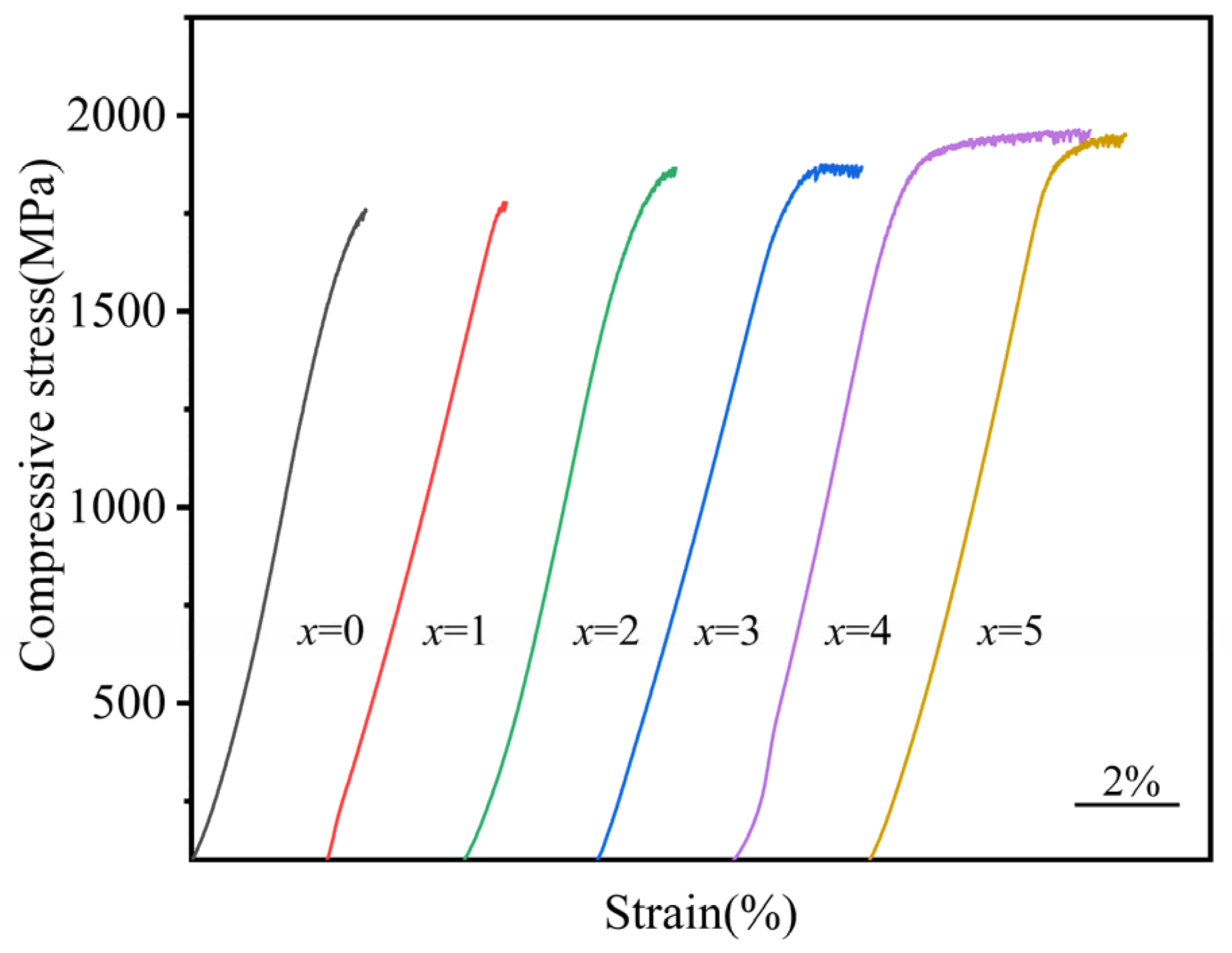- The fracture strength and compressive strain of Zr56Cu23Al10Ni11-xTax (x = 0, 0.5, 1, 1.5, 2, and 2.5 at.%) amorphous alloys increased to some extent after the addition of Ta. At x = 2, the compressive strain and fracture strength of the amorphous alloy reached maximum values of 2.3% and 1962 MPa, respectively.