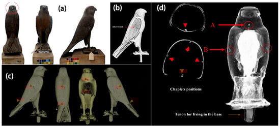 - Maher, M.A. X-RAY computed tomography of a late period falcon bronze coffin. Radiat. Phys. Chem. 2020, 166, 108475. [Google Scholar] [CrossRef]