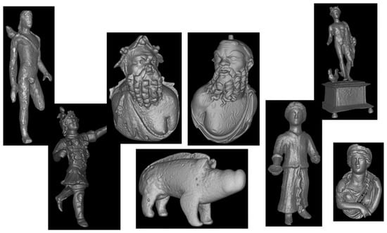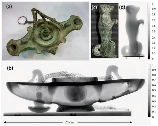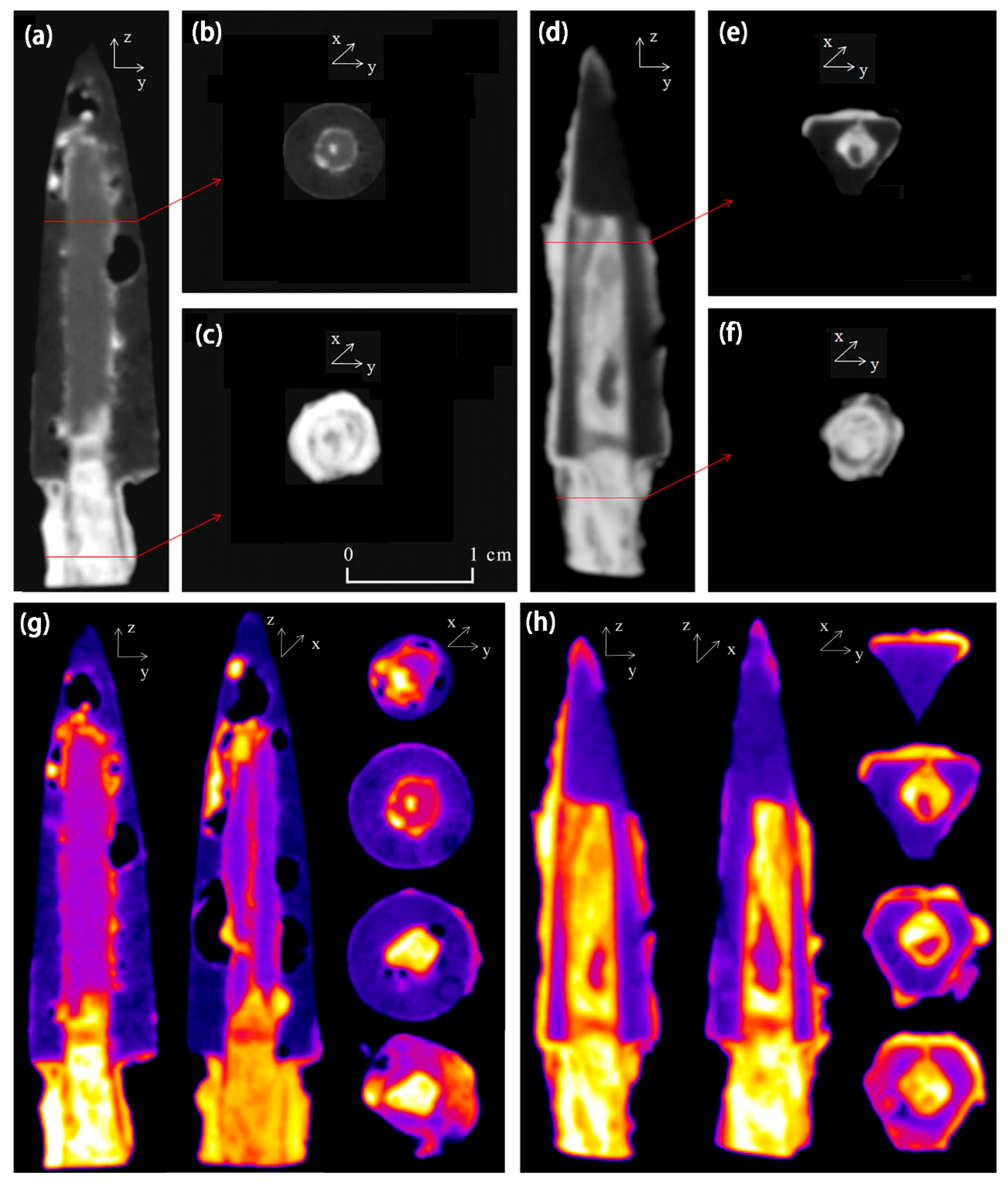 - Machado, A.S.; Silva, A.S.S.; Campos, G.N.; Gomes, C.S.; Oliveira, D.F.; Lopes, R.T. Analysis of metallic archaeological artifacts by X-ray computed microtomography technique. Appl. Radiat. Isot. 2019, 151, 274–279. [Google Scholar] [CrossRef] [PubMed]