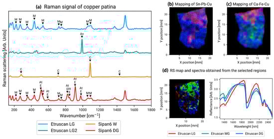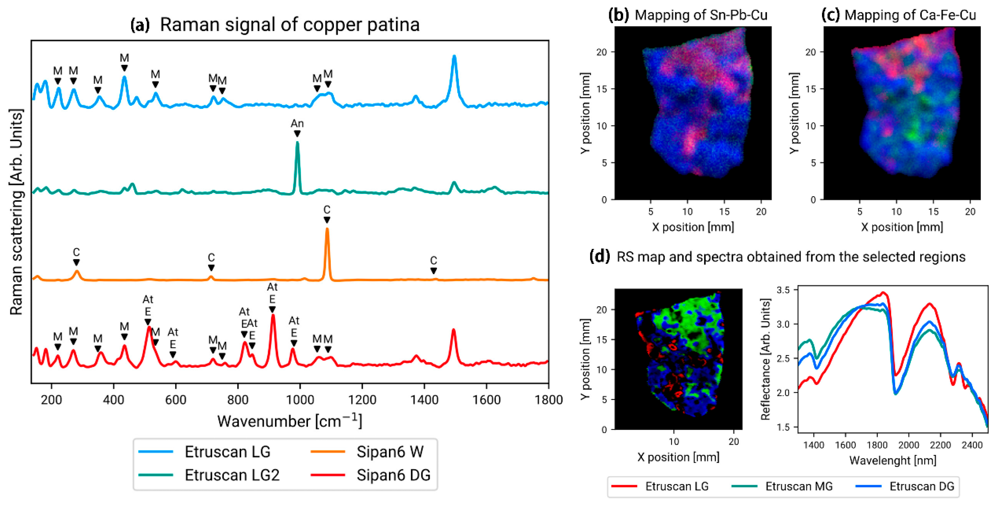 - Orsilli, J.; Caglio, S. Combined Scanned Macro X-Ray Fluorescence and Reflectance Spectroscopy Mapping on Corroded Ancient Bronzes. Minerals 2024, 14, 192. [Google Scholar] [CrossRef]