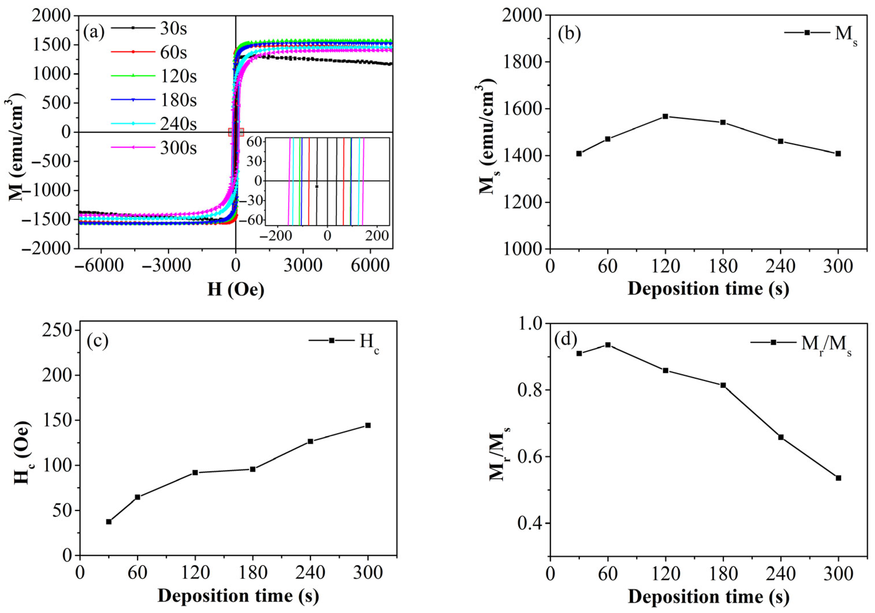 | Samples | Methods | Ms (emu/cm3) | Hc (Oe) | Mr/Ms | References |