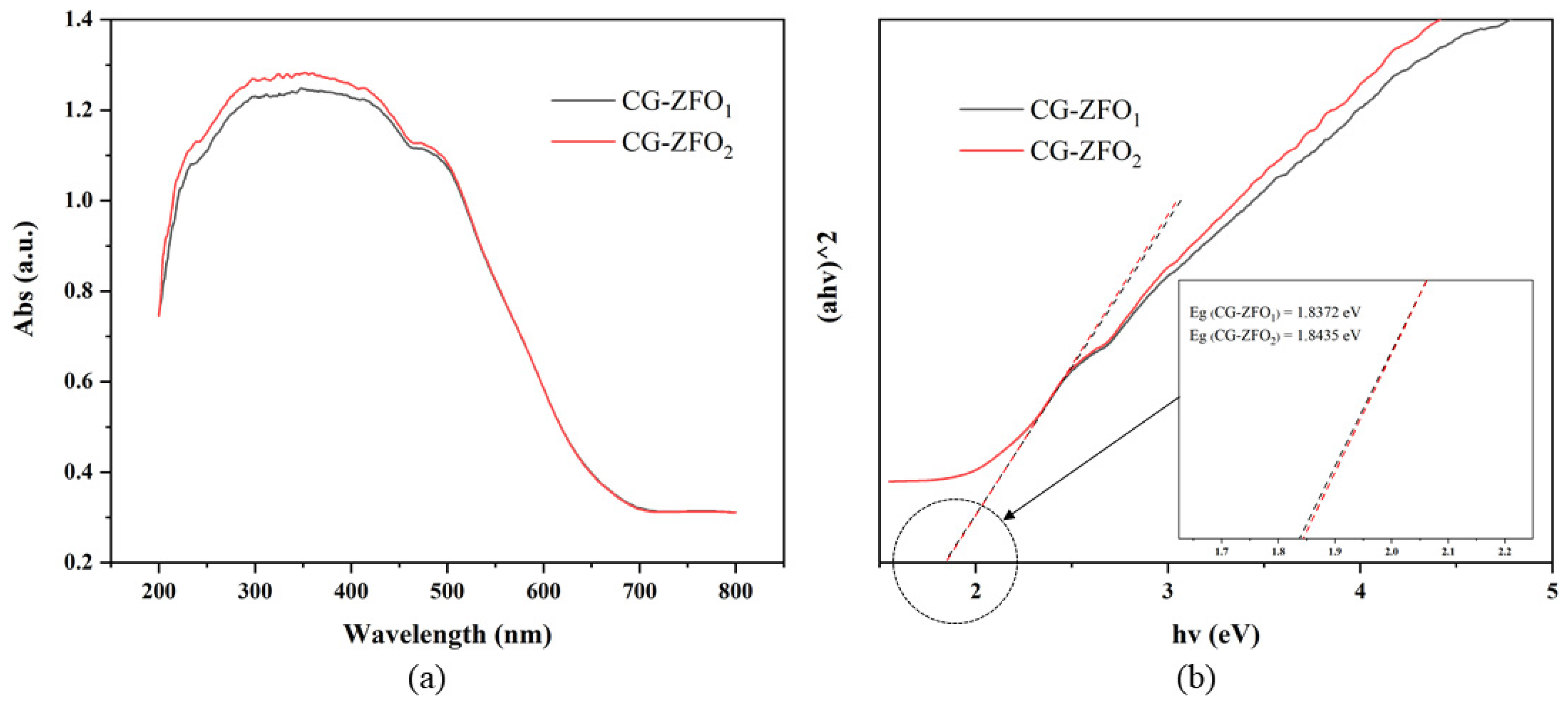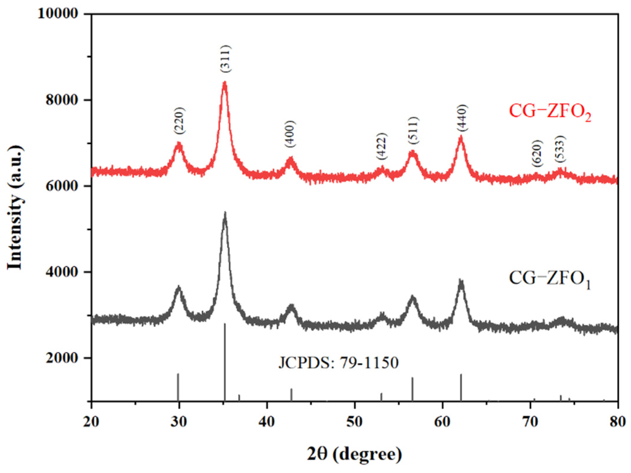 - CG-ZFO was characterized by XRD, SEM, FT-IR, etc., showing that the catalysts have a pure ZnFe2O4 crystal structure. The addition of CTAB resulted in a smaller crystal grain size, higher dispersion, and better light absorption capability and photo-generated charge separation capability of the catalyst.
