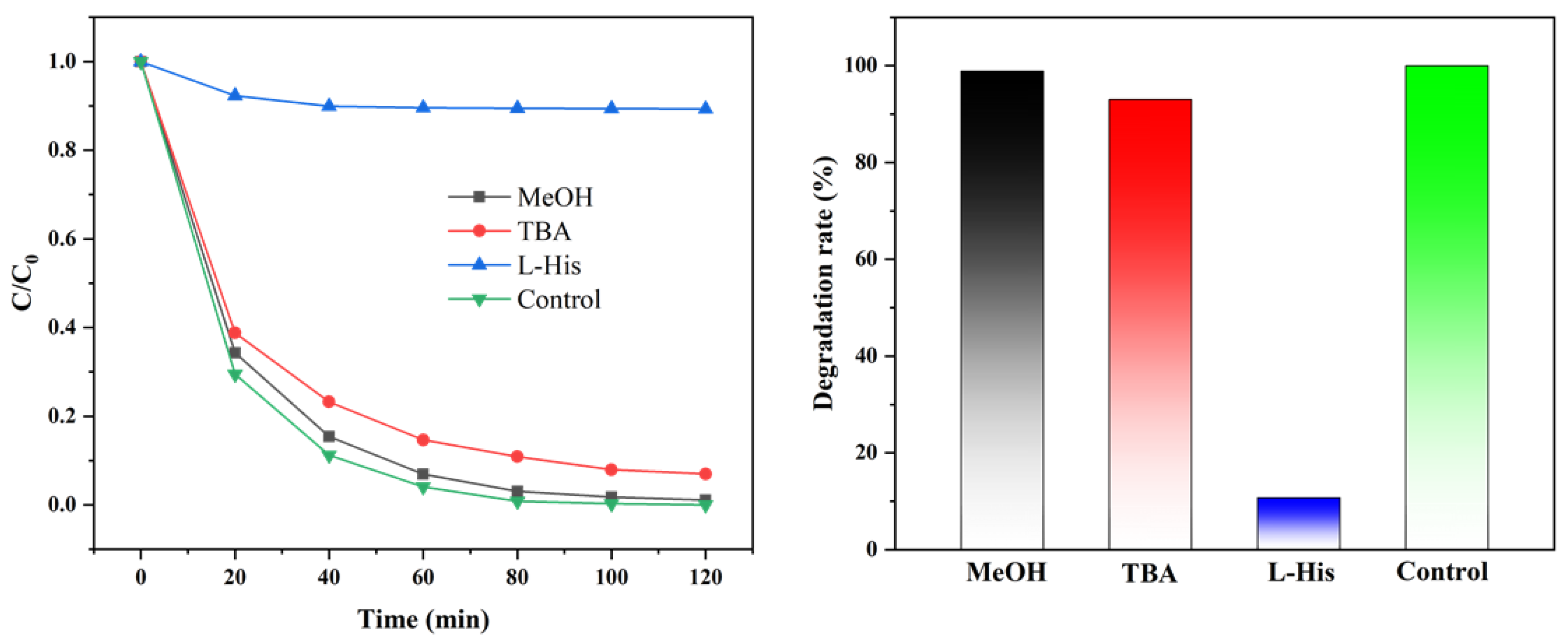 3.4. Degradation Mechanism Study