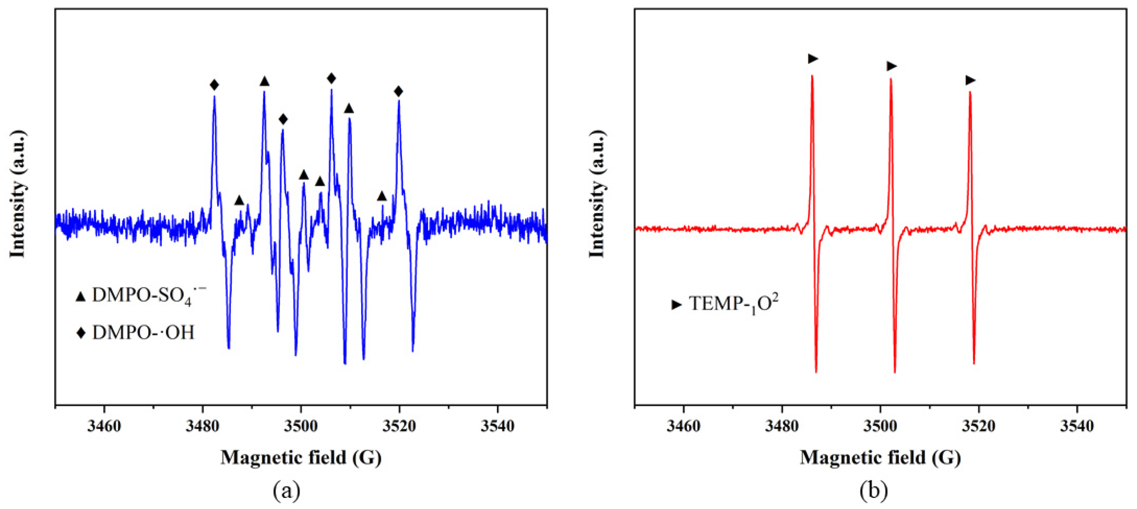 - Niu, P.; Li, C.; Wang, D.; Jia, C.; Zhao, J.; Liu, Z.; Zhang, X.; Geng, L. Electronic modulation of fiber-shaped-CoFe2O4 via Mg doping for improved PMS activation and sustainable degradation of organic pollutants. Appl. Surf. Sci. 2022, 605, 154732. [Google Scholar] [CrossRef]