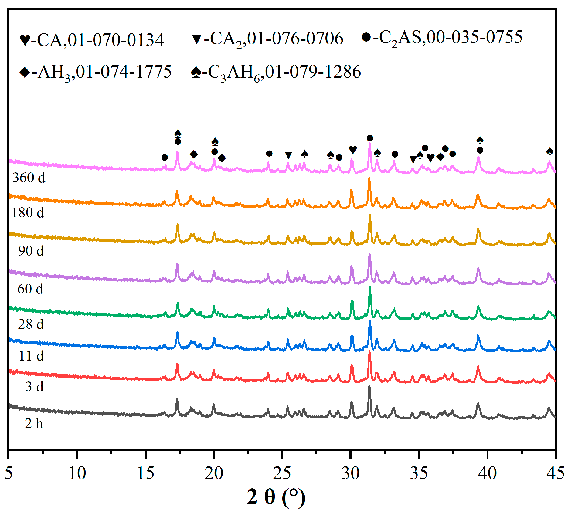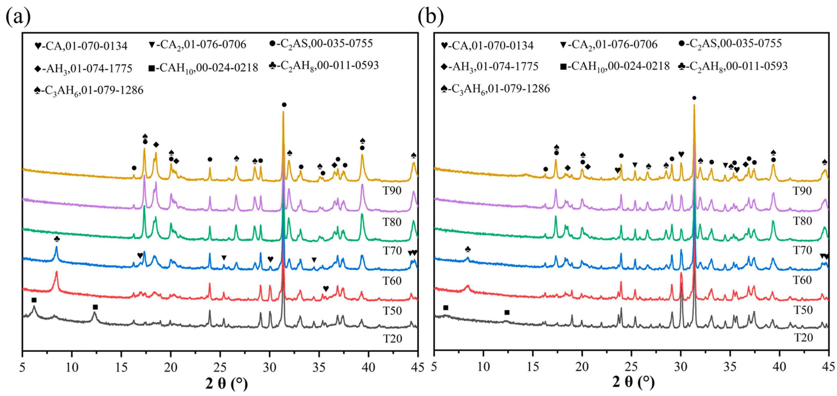 3.1. Effect of Steam Curing Temperature on Hydration Products of Alumina Cement