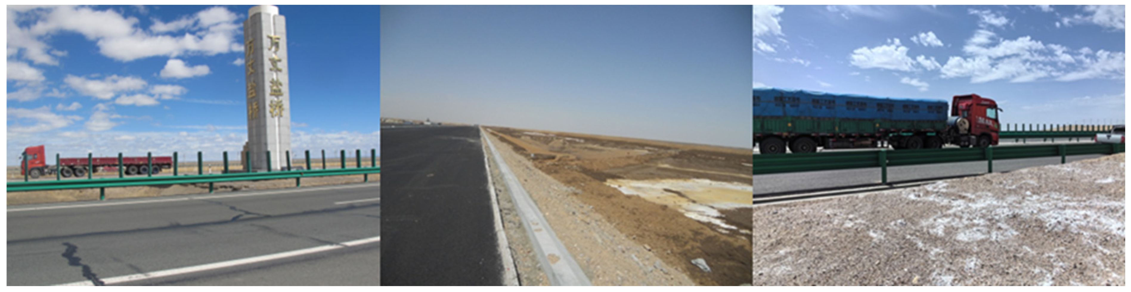 - Chen, Y. Emulsified Asphalt Cold Recycled Mixture Under Salt Corrosion Environment Road Performance Research. Master’s Thesis, Shihezi University, Shihezi, China, 2024. [Google Scholar]