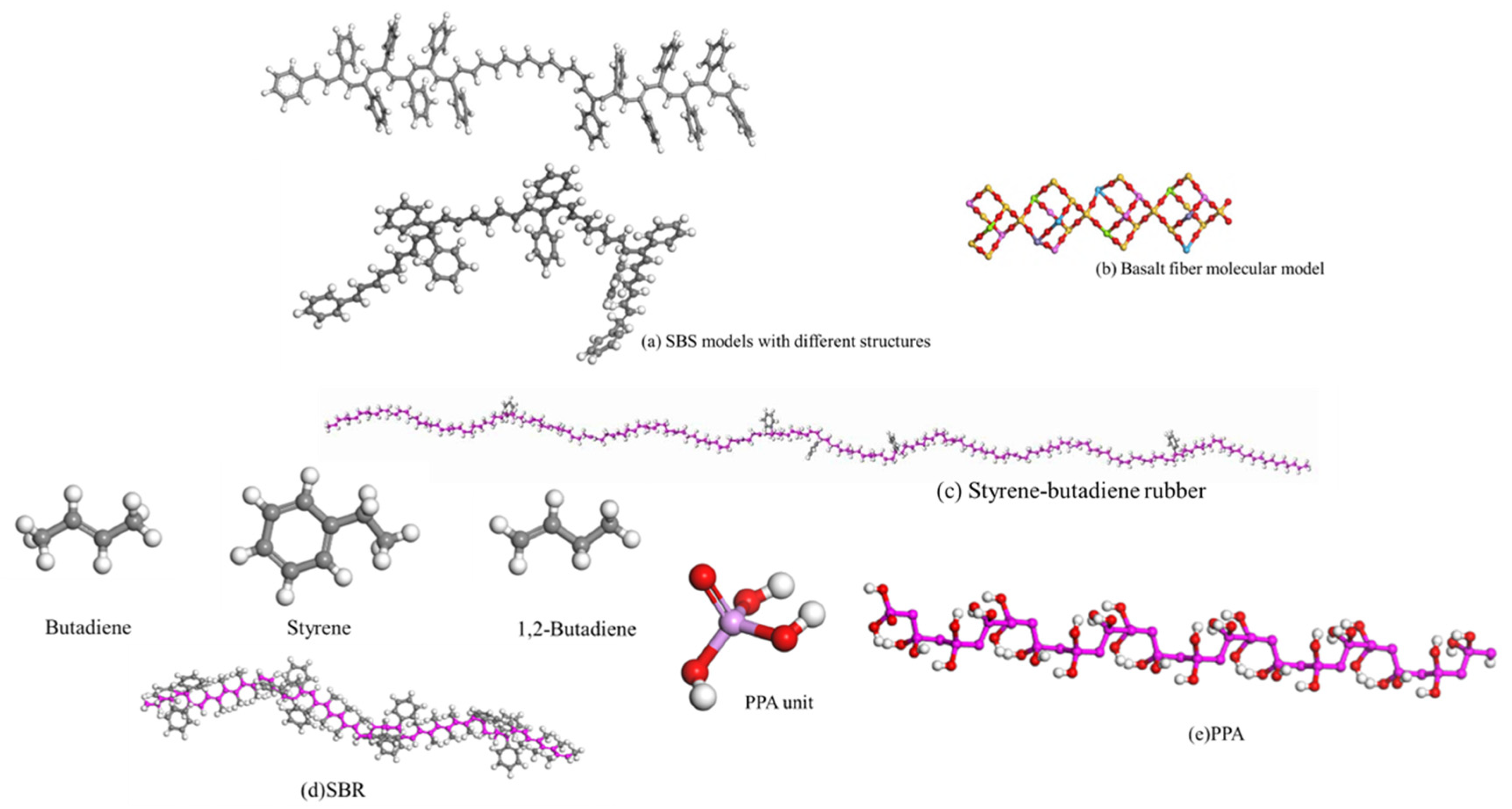- Liao, L. Research on the Performance Enhancement of SBR-Modified Asphalt Using Polyphosphoric Acid Based on Molecular Simulation. Hum. Commun. Sci. Technol. 2025, 51, 97–103. [Google Scholar]