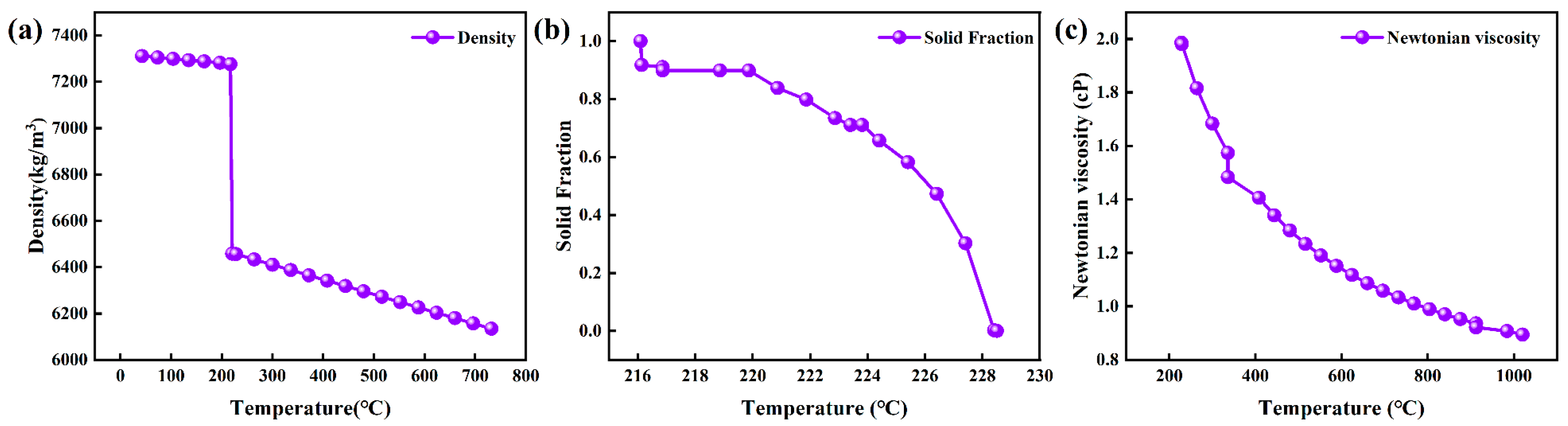 3.1. Temperature and Solid Fraction Evolution During Solidification