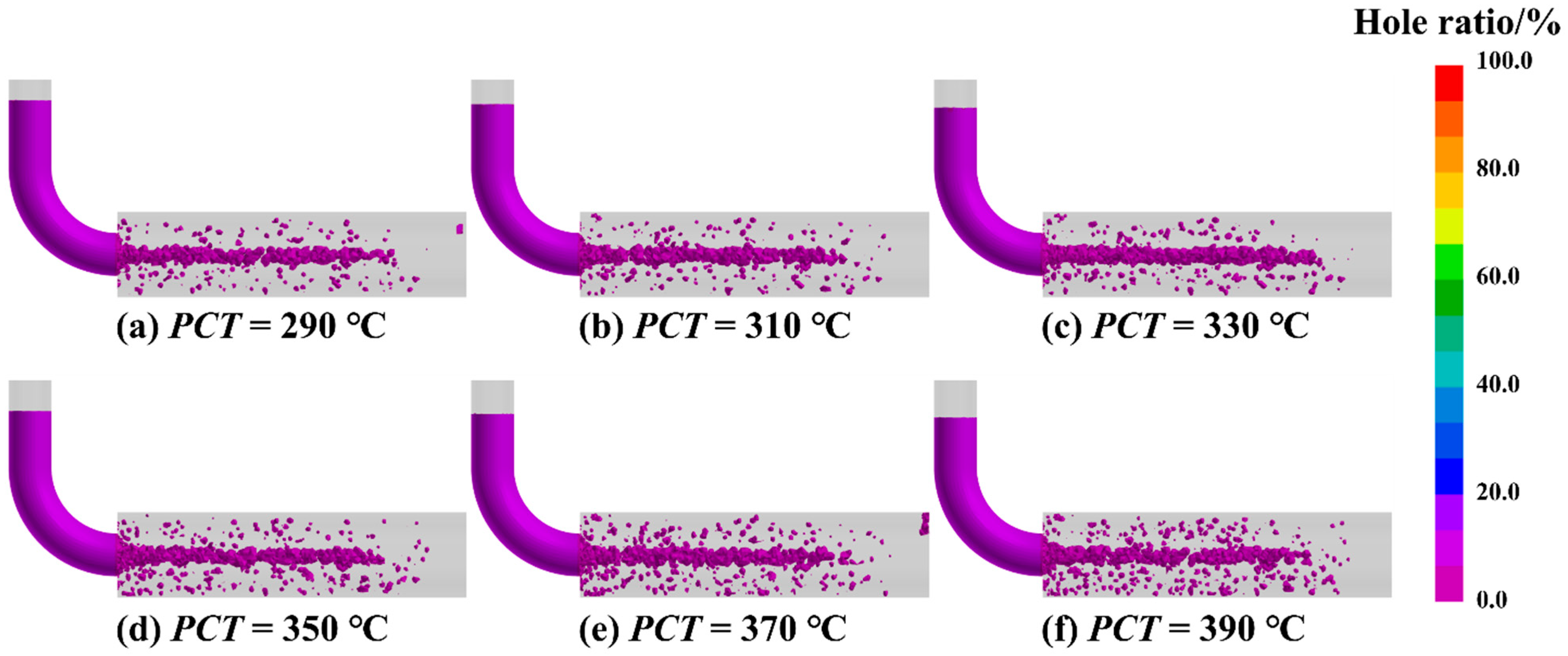 3.4. Effect of the Heat Transfer Coefficient on Porosity