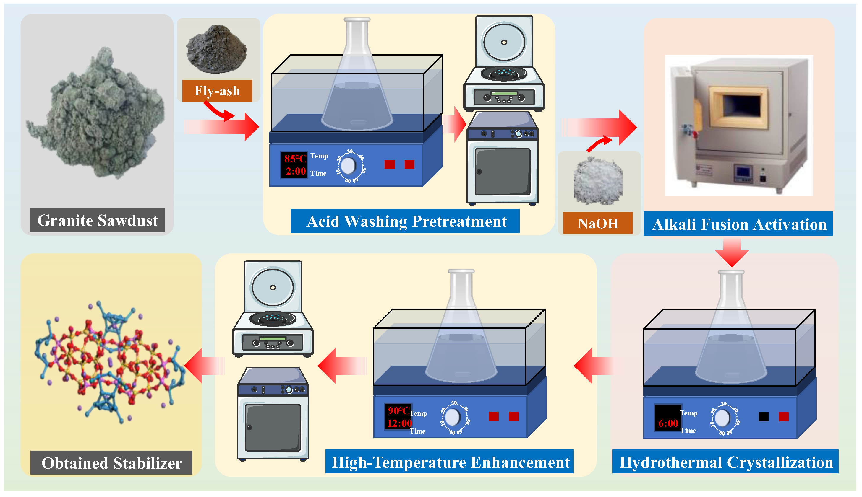 2.2.4. Preliminary Synthesis of Granite Sawdust-Based Stabilizer