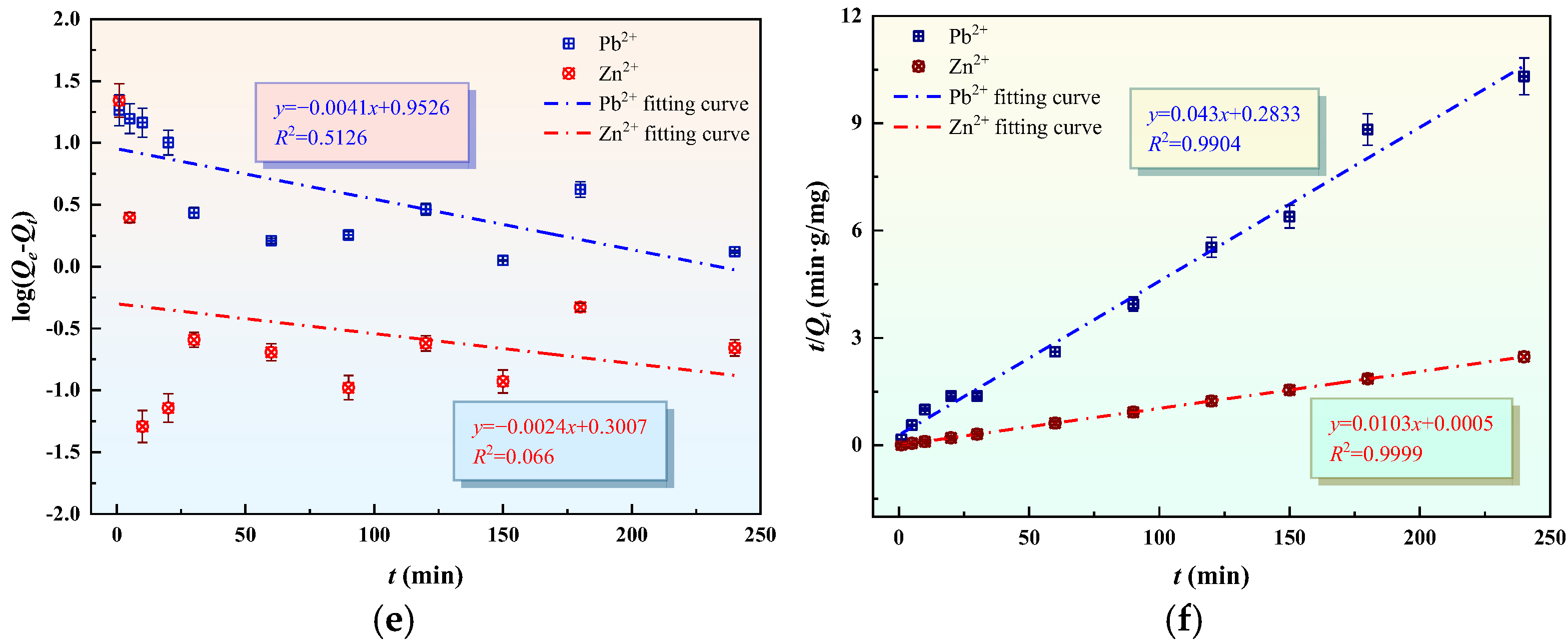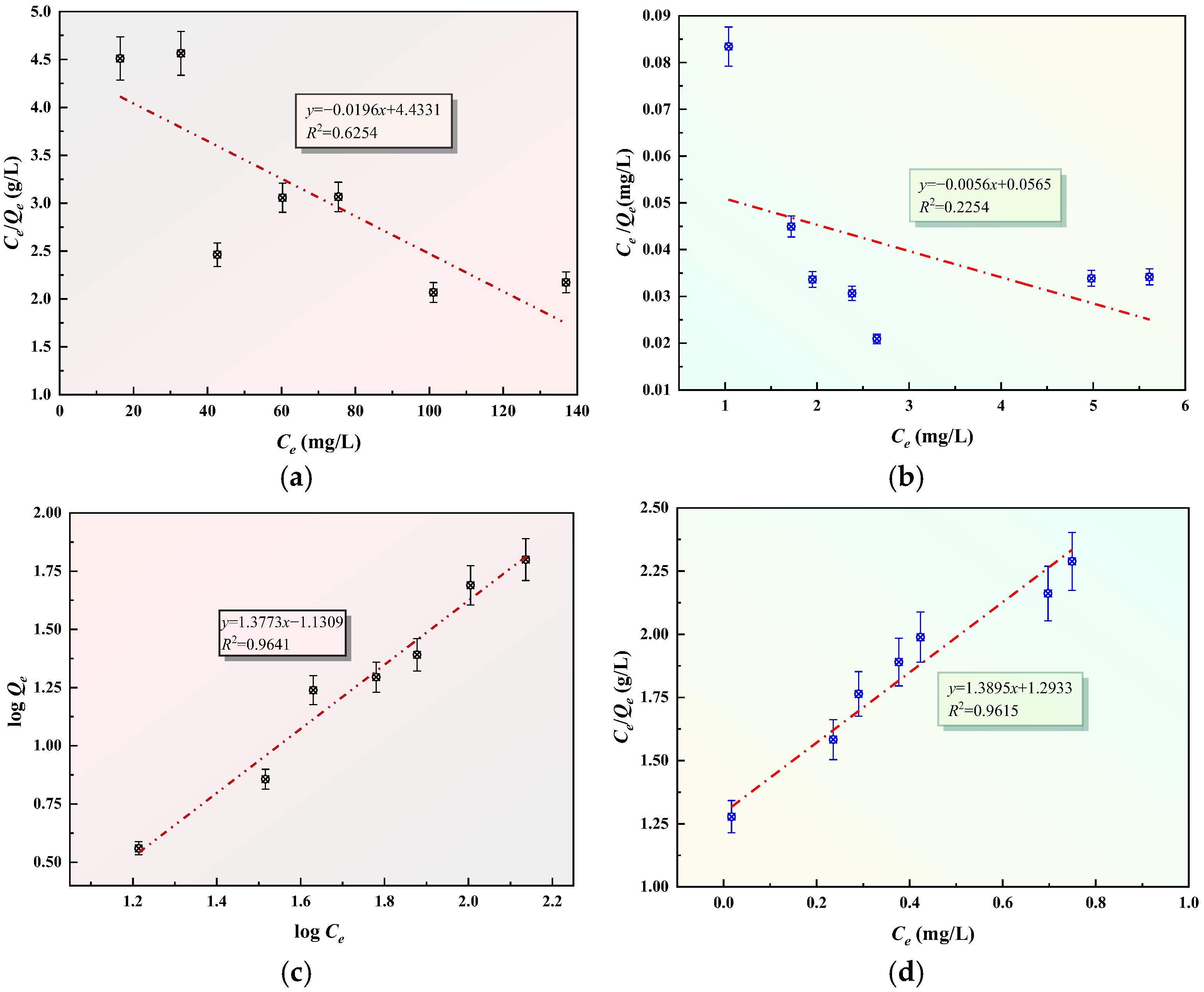3.7. Analysis of Adsorption Isotherms and Adsorption Kinetics of GFAS