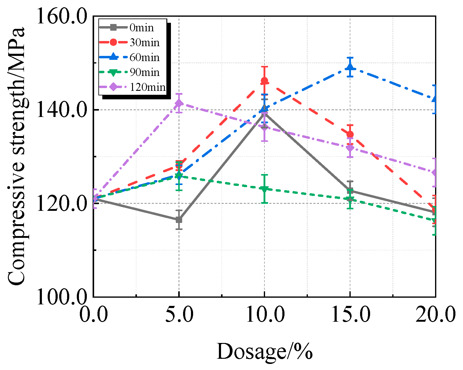 3.1. Effect of Grinding Time on Properties of UHPC Mixed Recycled Fine Powder