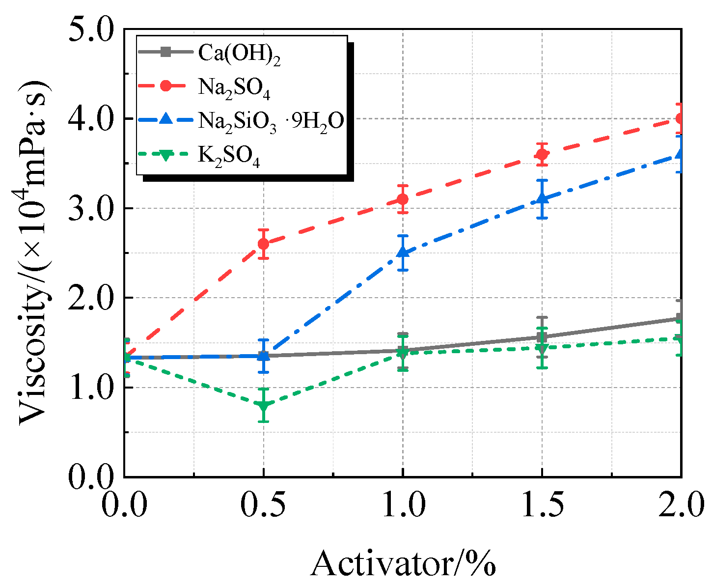 - Chen, J.S.; Qiao, M.; Wu, Q.Y. Effect and mechanism of different chemical activators on the activity of regenerated powder. Bull. Chin. Ceram. Soc. 2023, 42, 1409–1417. [Google Scholar] [CrossRef]