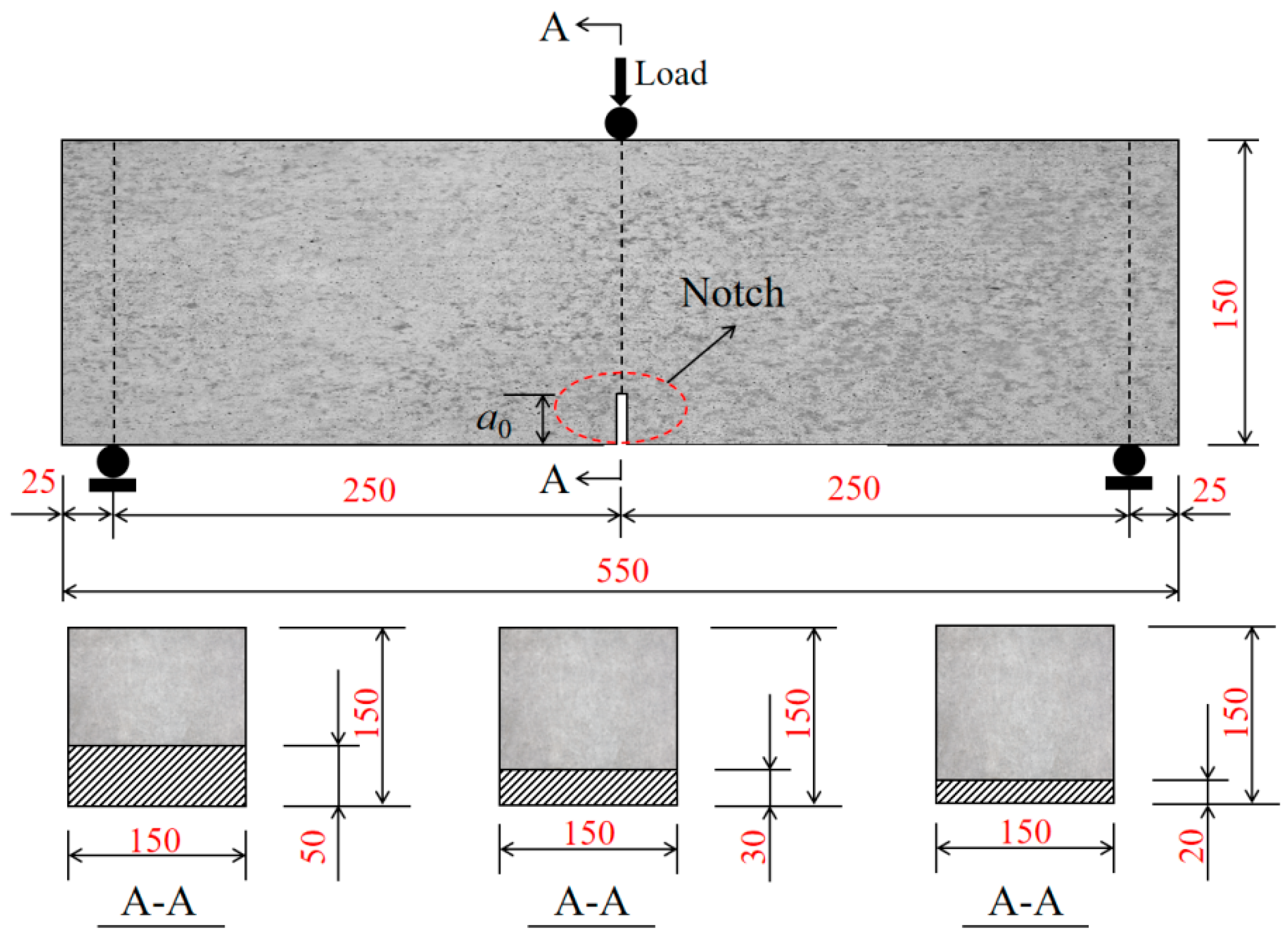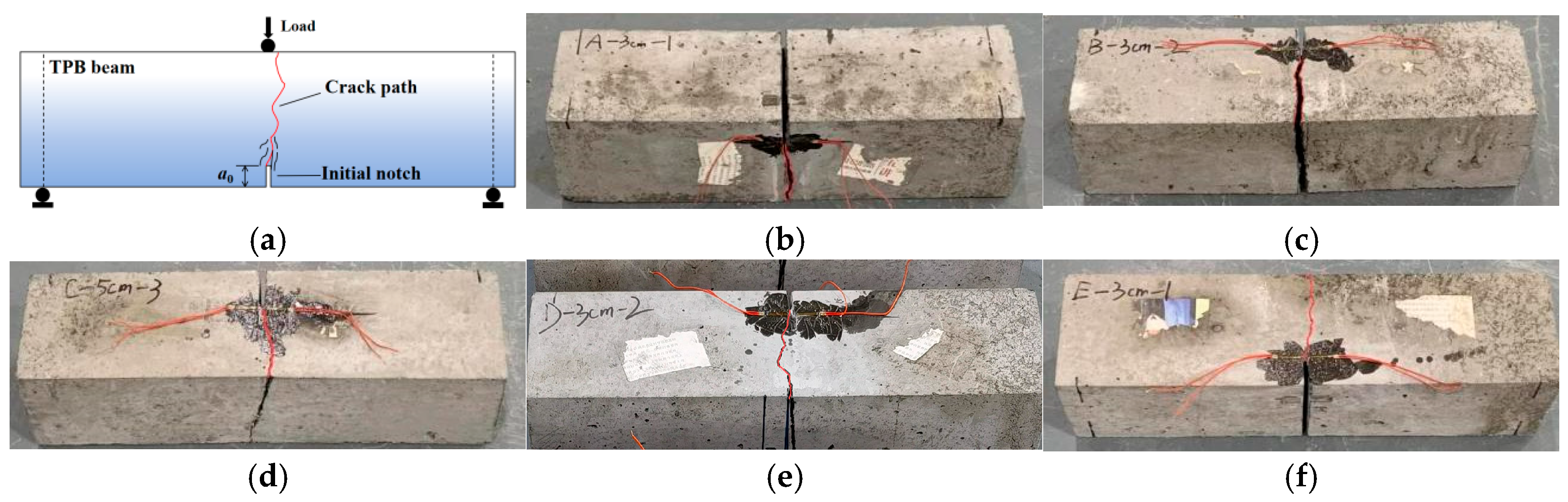 - Yin, Y.; Qiao, Y.; Hu, S. Determining concrete fracture parameters using three-point bending beams with various specimen spans. Theor. Appl. Fract. Mech. 2020, 107, 102465. [Google Scholar] [CrossRef]