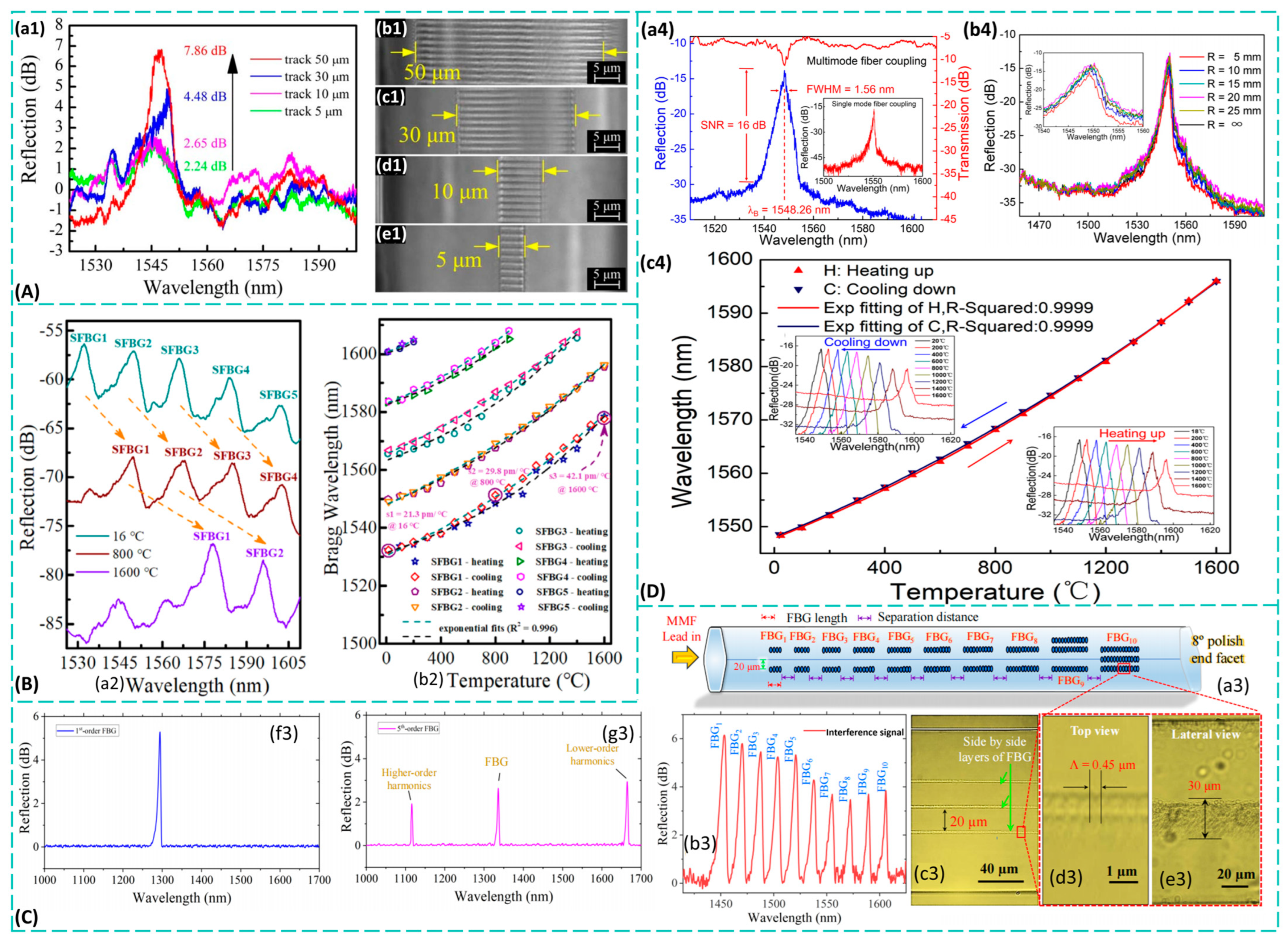 - He, J.; Xu, X.Z.; He, J.; Wu, J.F.; Bai, Z.Y.; Wang, Y.P. Single-mode helical sapphire fiber Bragg grating sensors fabricated by femtosecond laser direct writing technology. In Proceedings of the 29th International Conference on Optical Fiber Sensors, Porto, Portugal, 25–30 May 2025. [Google Scholar]
